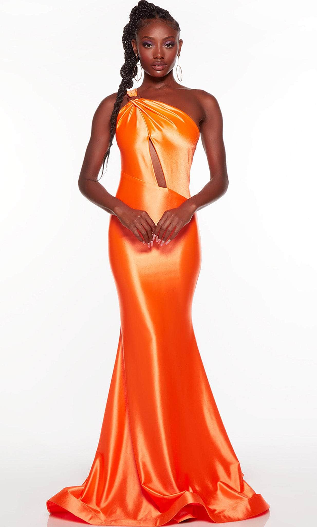 Fall in love with the classiness of this ethereal Alyce Paris 61441 creation. The form-fitting satin gown features an asymmetrical neckline, ruched details, and a cutout midriff. The midrise back has gorgeous strappy details and center zipper fastening. Ending in a horsehair hem and sweeping train, the skirt flawlessly glides in a full length mermaid silhouette. This Alyce Paris 61441 masterpiece is a stunning look for any special event. Models are wearing the Midnight, Red and Bright Orange colors.