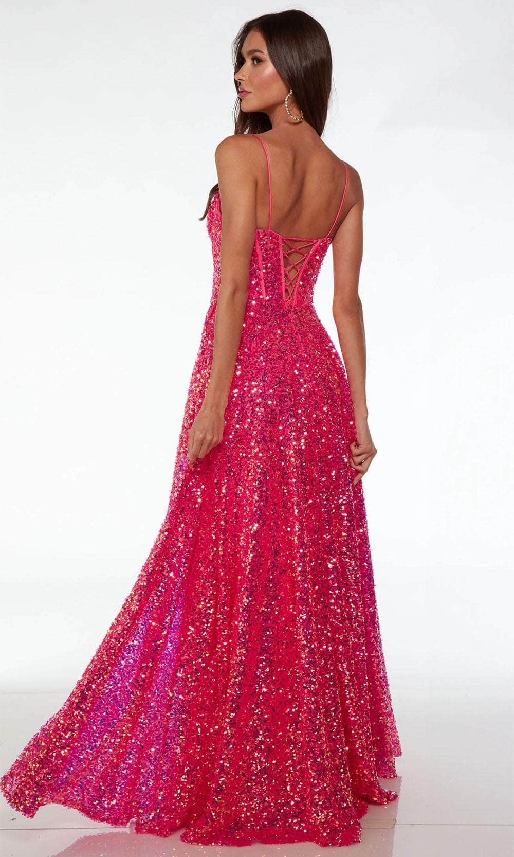 Expect to be turning heads as you walk into your special event wearing this creatively romantic Alyce Paris 61517 evening dress. This stunning dress which showcases an alluring scoop neckline with a plunging style on fitted and sleeveless corset bodice will help you gather a list of admirers. It also showcases a mid-open back that is enclosed by a lace for a refined finish. Additionally, the top exhibits spaghetti straps for added support, while the A-line skirt highlights an enticing high slit. It is also entirely designed with dazzling sequins, elevating your overall visual appeal. Clothe yourself in an alluring perfection that would capture a fairy tale you are dreaming of in this Alyce Paris 61517 creation. Model is wearing Barbie Opal color.