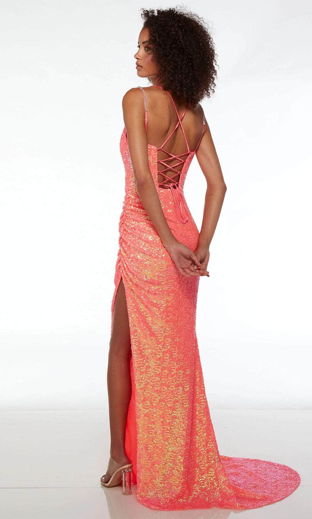 Boasts your feminine style with this Alyce Paris 61544 a spaghetti strap fitted bodice complemented by a flattering V-neckline and a daring side slit. Its long-length skirt flows elegantly in a sleek sheath silhouette, enhanced by back embellished straps for added glamour. The gown concludes with a graceful train, ensuring a stunning presence at any formal event. Perfect for those seeking a blend of allure and sophistication, this Alyce Paris 61544 promises to make a memorable statement with its timeless design and intricate details. Model is wearing Hot Coral color.