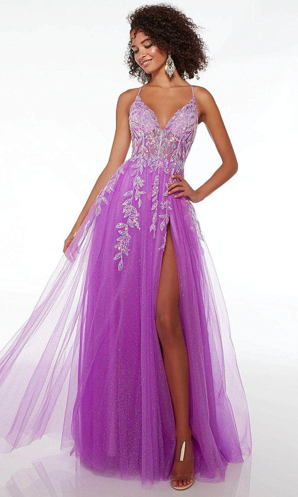 Unveil your timeless loveliness in this Alyce Paris 61562 masterpiece. This sleeveless ensemble highlights the sequins and glitter embellishment that add a touch of elegance and sparkle. The adjustable spaghetti straps crisscross at the open back, giving it a stunning style and comfy fit. The A-line skirt showcases a thigh-high leg slit for effortless movement, adding drama to the ensemble. The full-length hemline completes the appearance. You are a breath of fresh air in this dreamy Alyce Paris 61562 gown. Models are wearing Neon Magenta, and Tiffany colors.