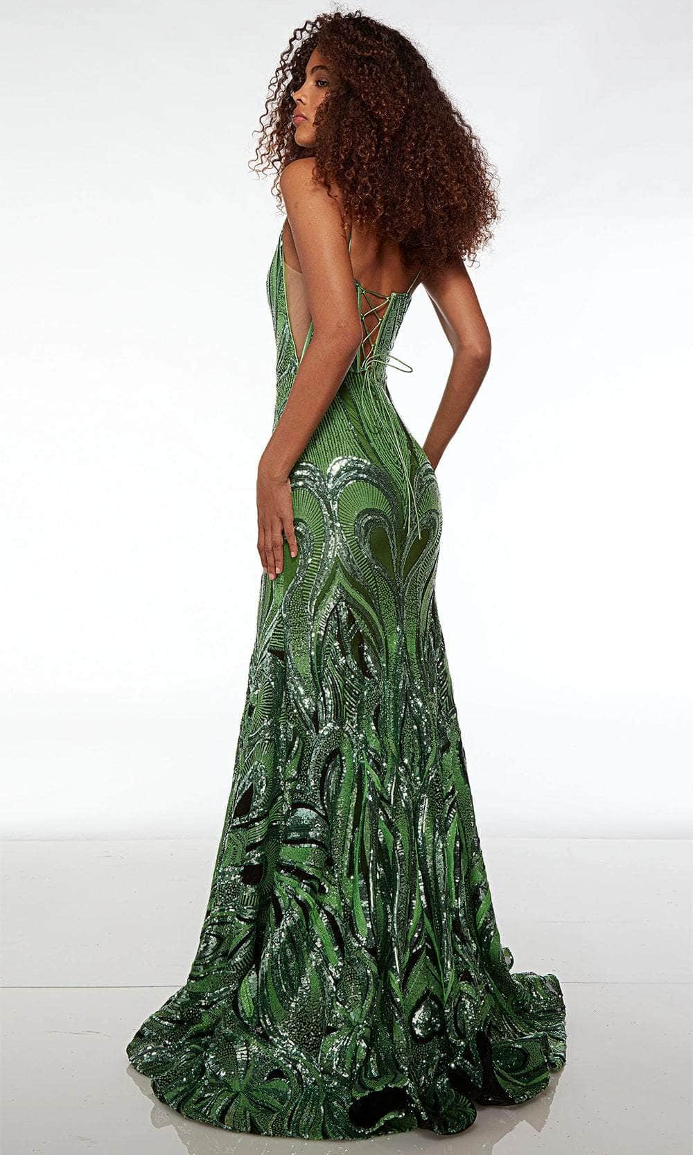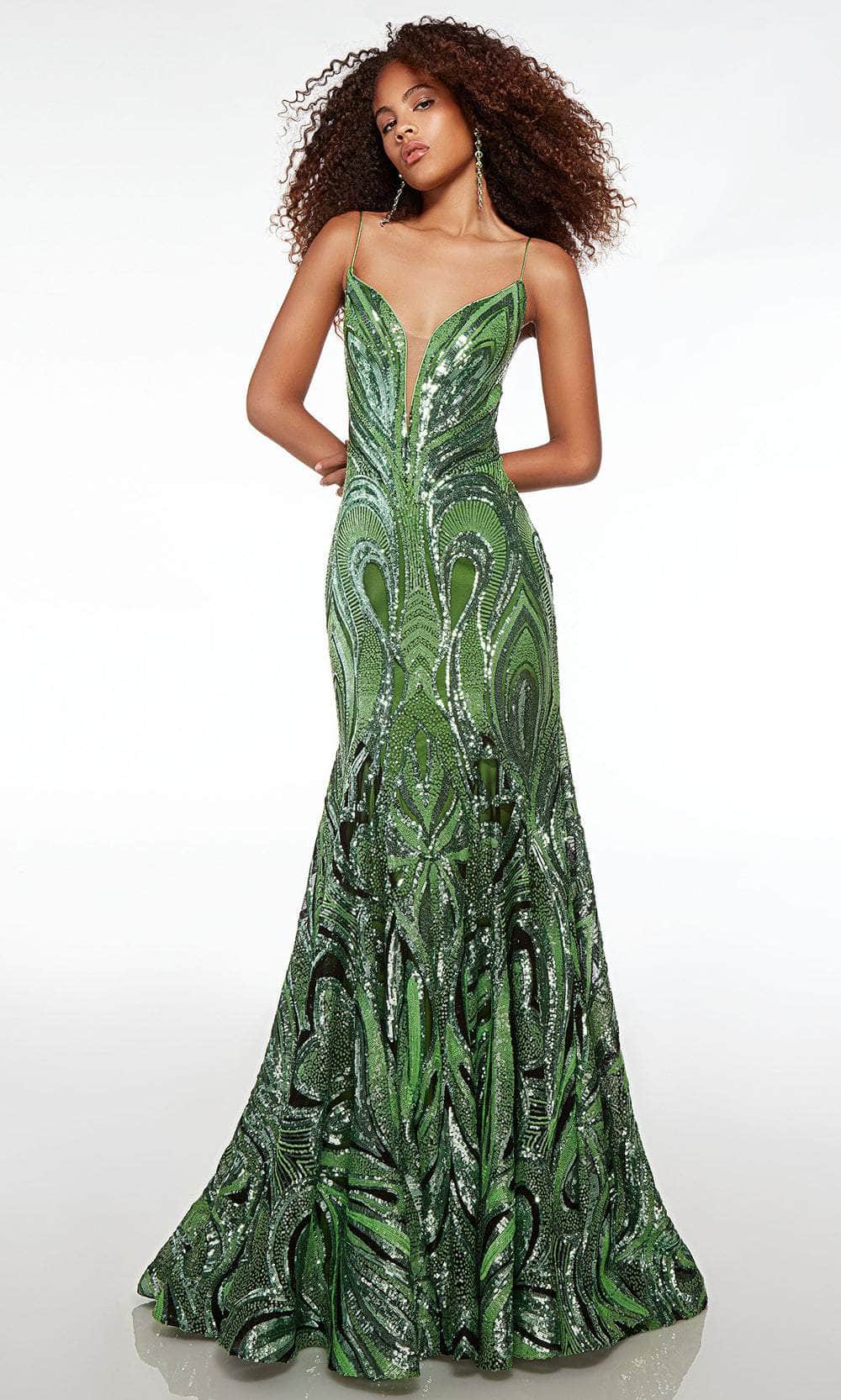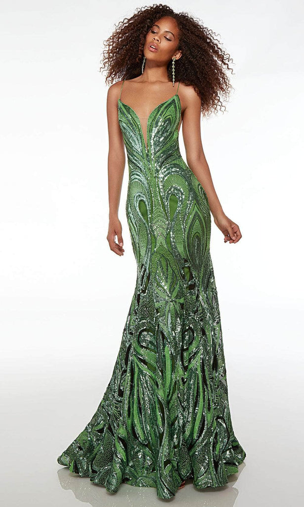 Enter the party and do that walk of a regal beauty in this Alyce Paris 61564 evening dress. Enchant everyone you pass through while wearing this dress which displays an alluring plunging V-neckline on a fitted and sleeveless bodice, also featuring spaghetti straps for added support. It also showcases an enticing mid-open back that is enclosed by a lace for a sophisticated finish. Additionally, it also has sheer sides and a sheer inset on the chest. A sophisticated mermaid silhouette is evident on the floor-length skirt, heightening the overall class from any angles. It is also entirely designed with sequin embellishments which allows you to shine, making you the owner of the spotlight. Surround yourself with sparkle of glamour when you walk in this dazzling Alyce Paris 61564 masterpiece. Models are wearing Green, and Periwinkle colors.