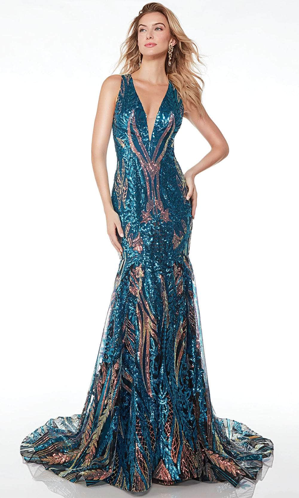 Feel glamourous in this Alyce Paris 61657,that exude elegance with its sleeveless, sequin-adorned bodice and sheer insert. The long skirt falls in a mermaid form, and an open back with a lace-up accent adds charm. This elegant train and back zipper closure make this gown ideal for formal occasions. This Alyce Paris 61657 elaborate design ensures a remarkable and fashionable appearance by fusing sophistication and glamour. Models are wearing Lavender and Teal/Copper colors.