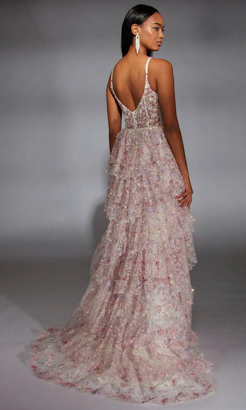 | Details: | Floral Sequins, Spaghetti Straps, High Slit, Layered Ruffle Skirt |