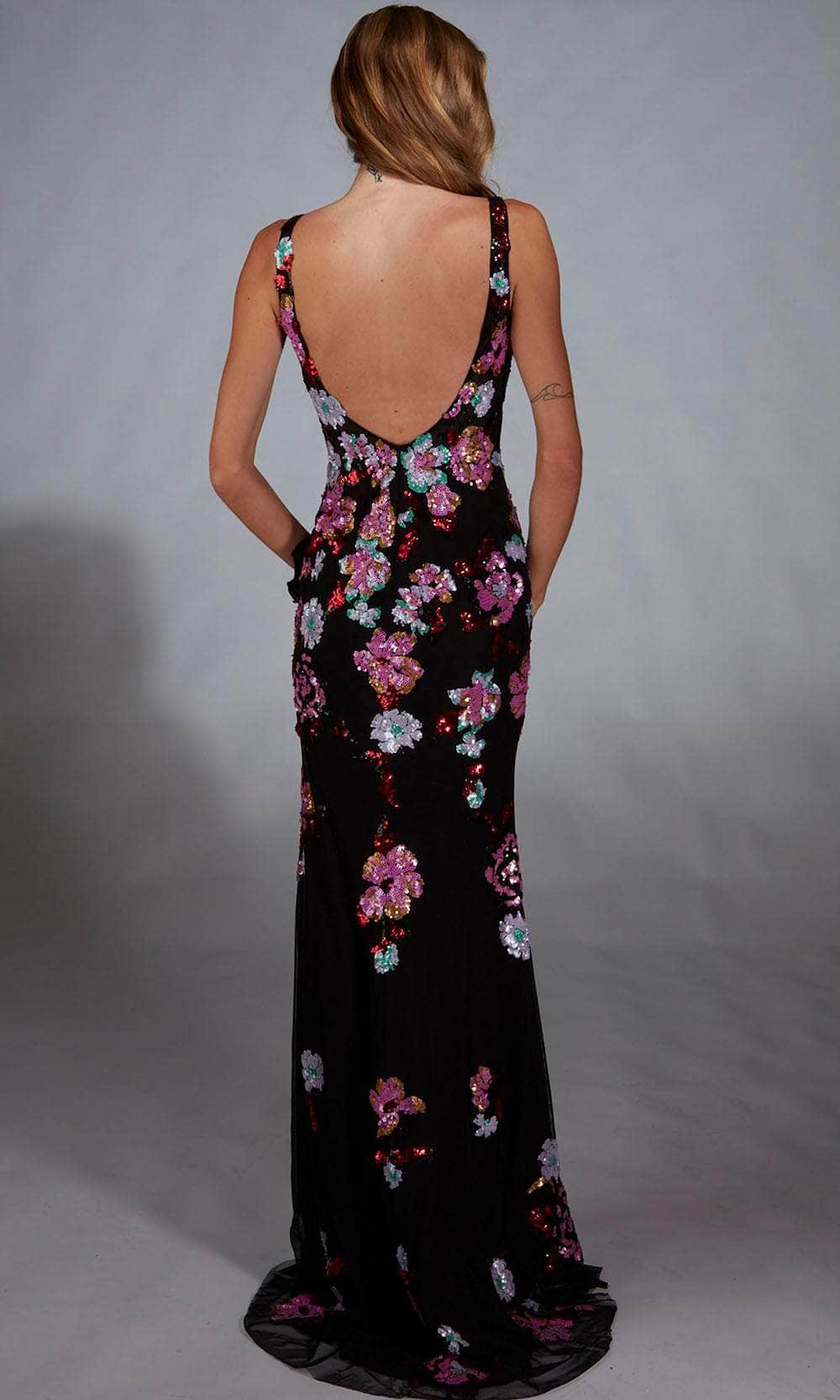 | Details: | Ruffled High Slit, Fitted, Floral Sequin, Sleeveless |