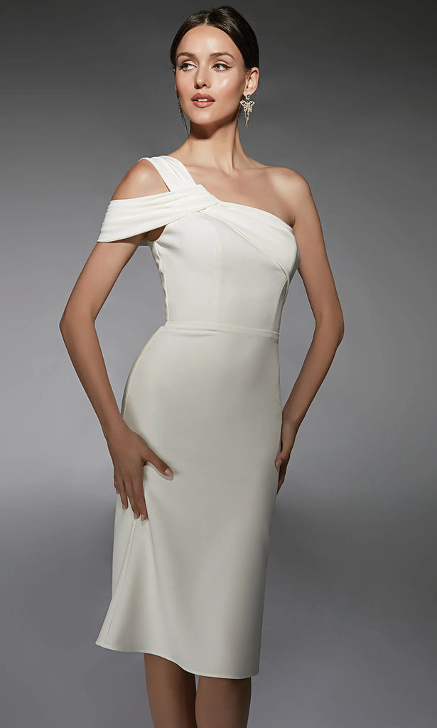 | Details: | Cold Shoulder Sleeve, Pleated Details, Mid-Open Back, Invisible Back Zipper, Curve-Hugging Silhouette |