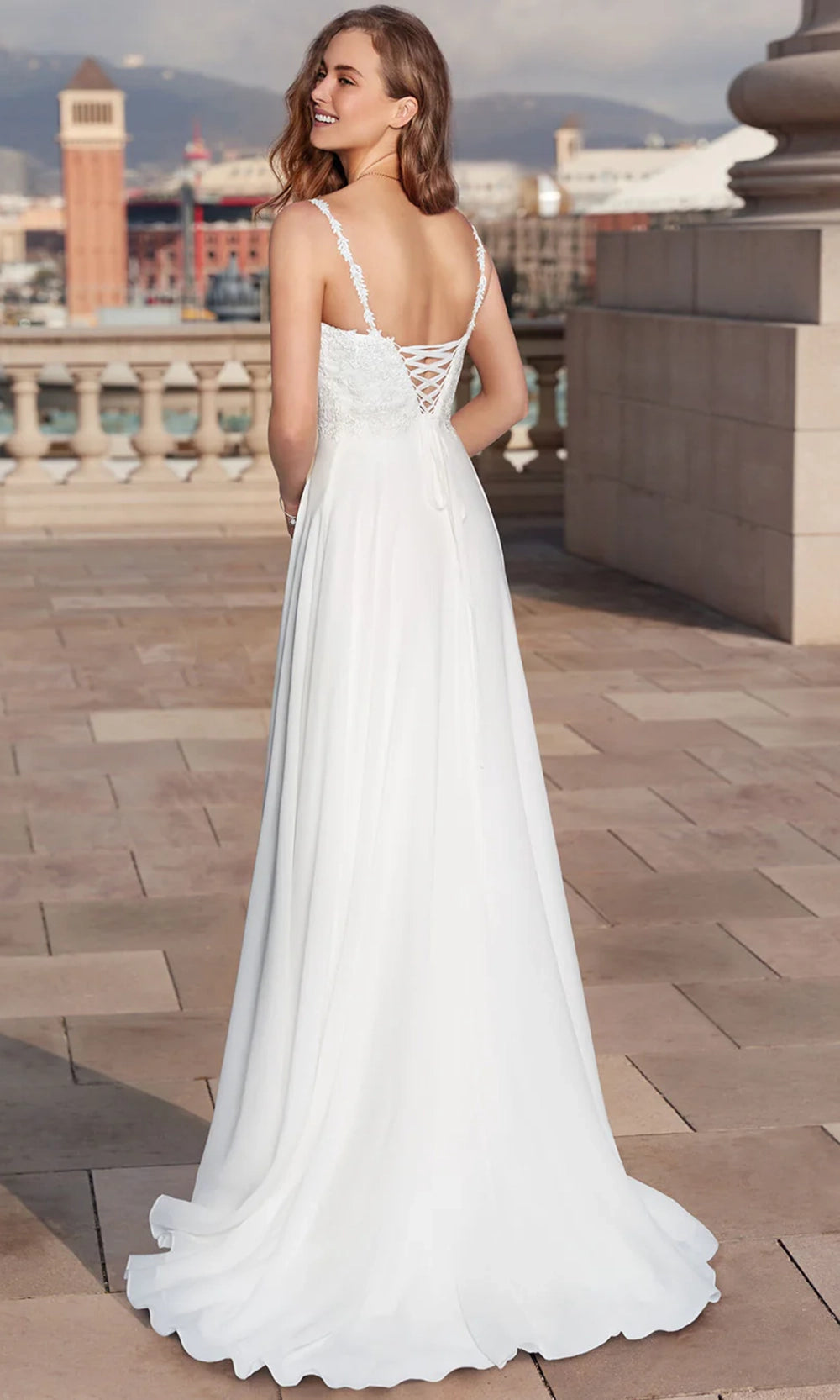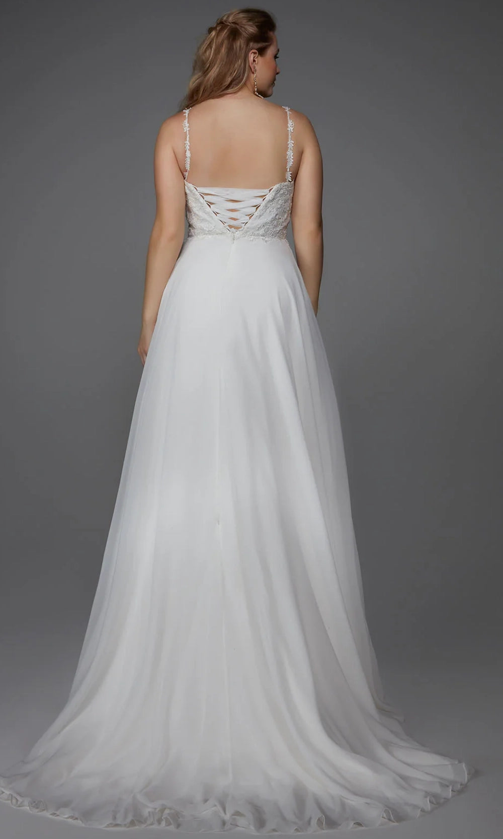 | Details: | Appliqued Thin Straps, Embroidery, Lace-Up Back, Sweep Train, Layered Skirt |