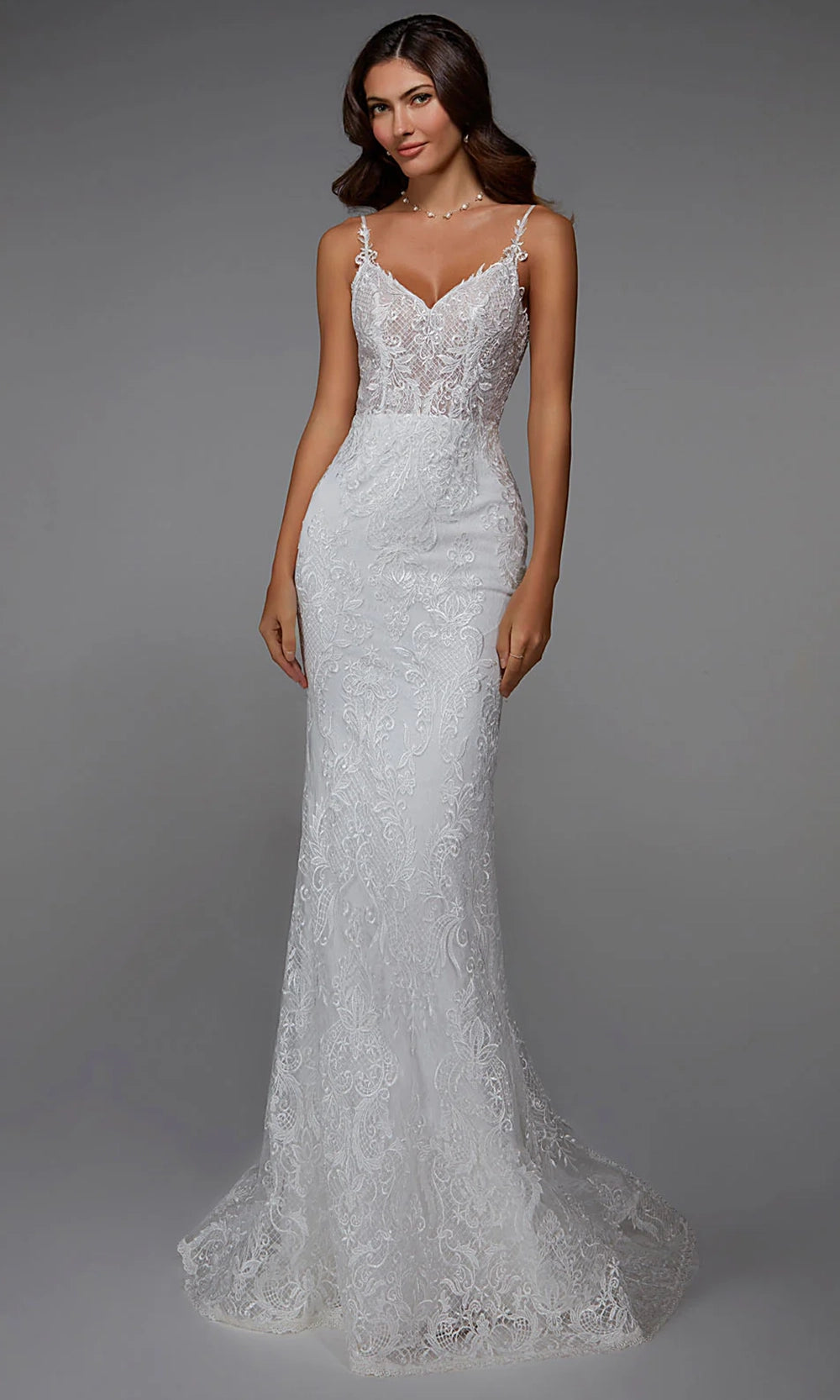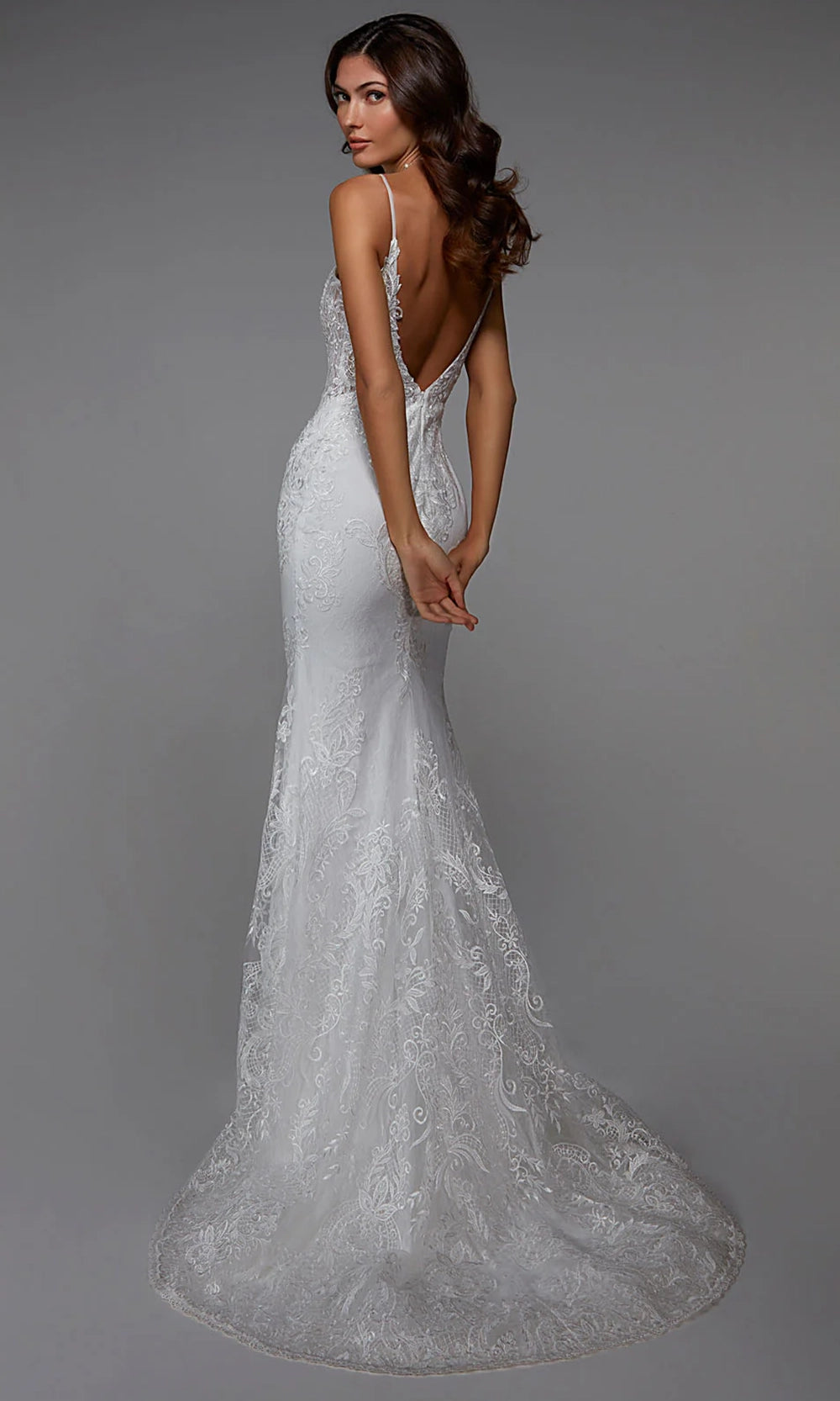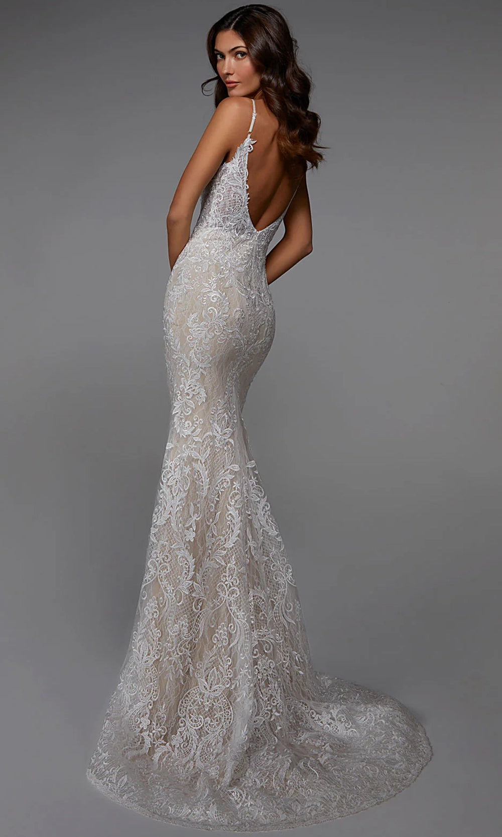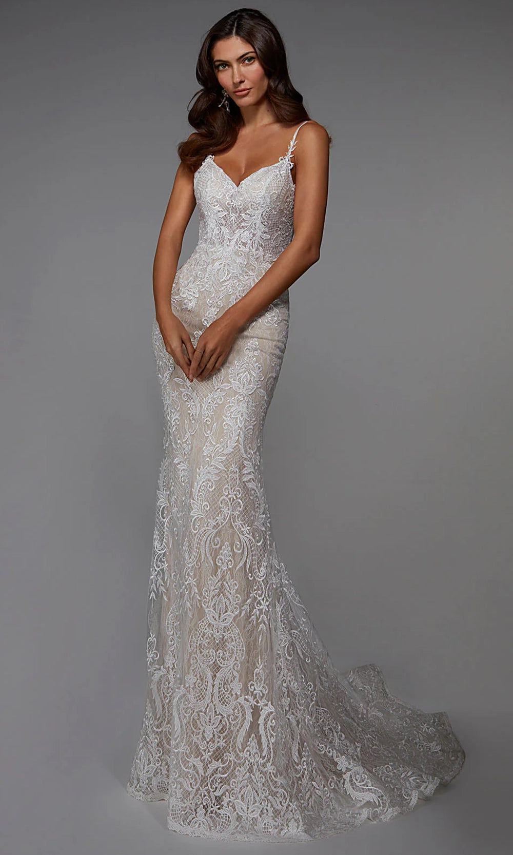 Ornate from top to bottom, Alyce Paris 7028 style offers an eye-catching lace design that is both romantic and daring. The sweetheart neckline is paired with spaghetti straps, while the fitted bodice reveals just enough through illusion bodice and low V-shaped back. The sheath silhouette clings to the body before flaring into a full skirt and sweep train, creating an elegant sense of motion. Lace embroidered detailing is carried throughout, giving the dress a rich and textured finish. Alyce Paris 7028 brings together classic tailoring and artistic embellishment for an unforgettable formal look. Models are wearing Ivory, and Ivory-Sand colors.