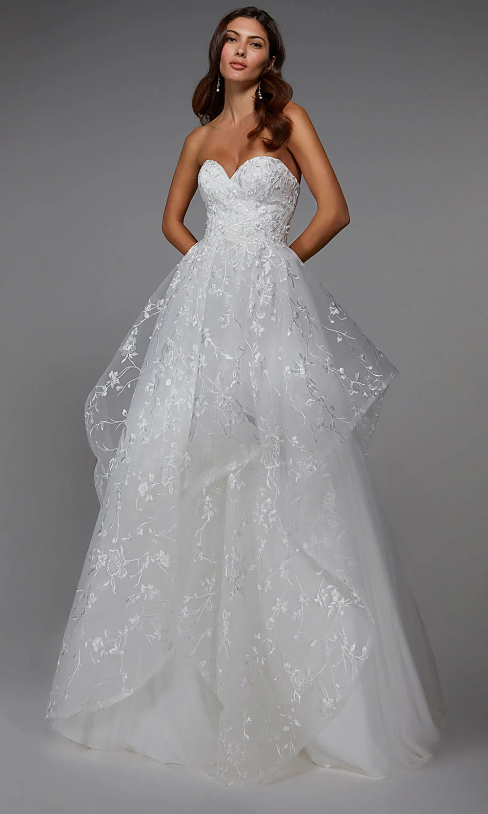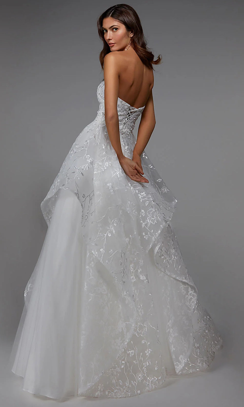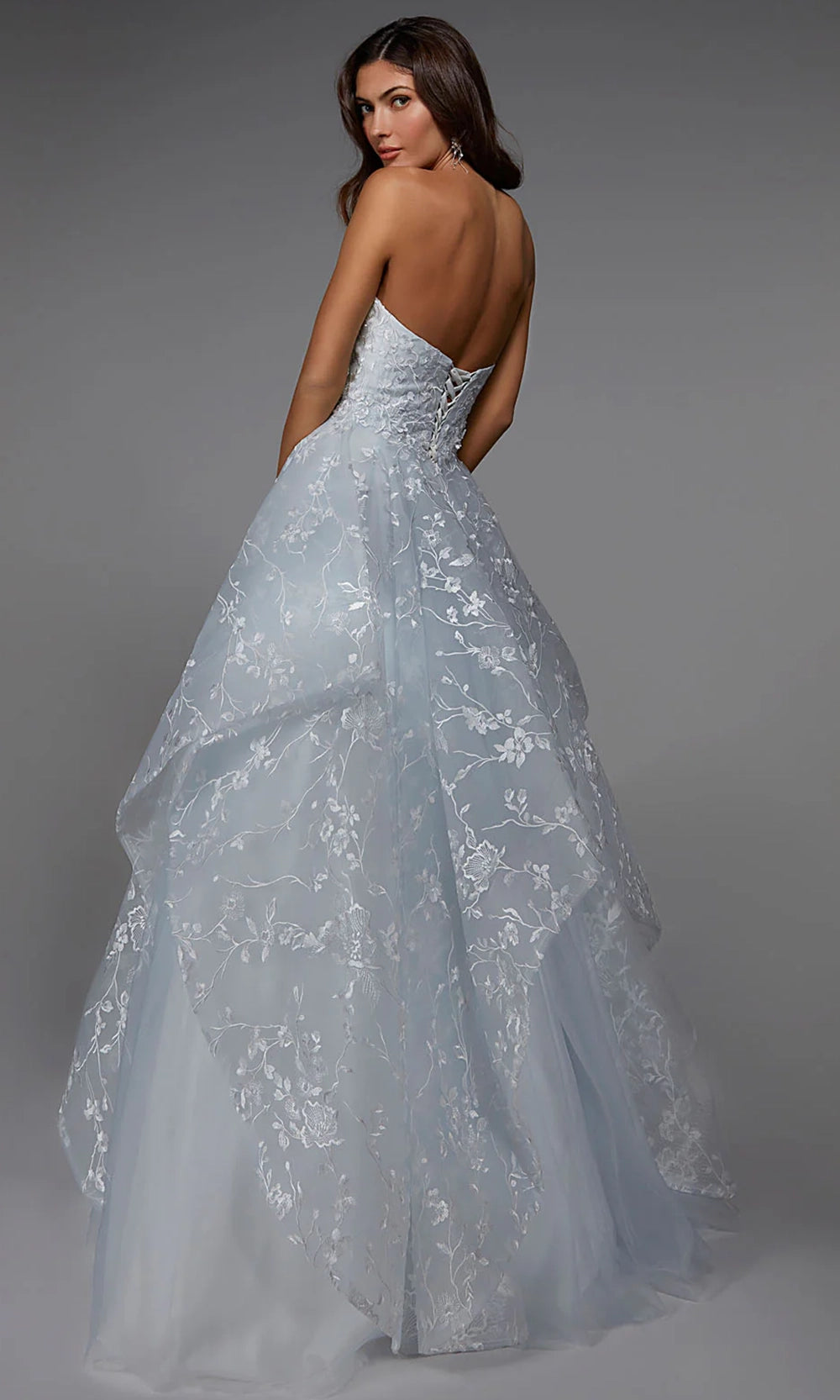 | Details: | Strapless, Floral Embroidery, Layered Skirt, Lace-Up Back, Floor Length |