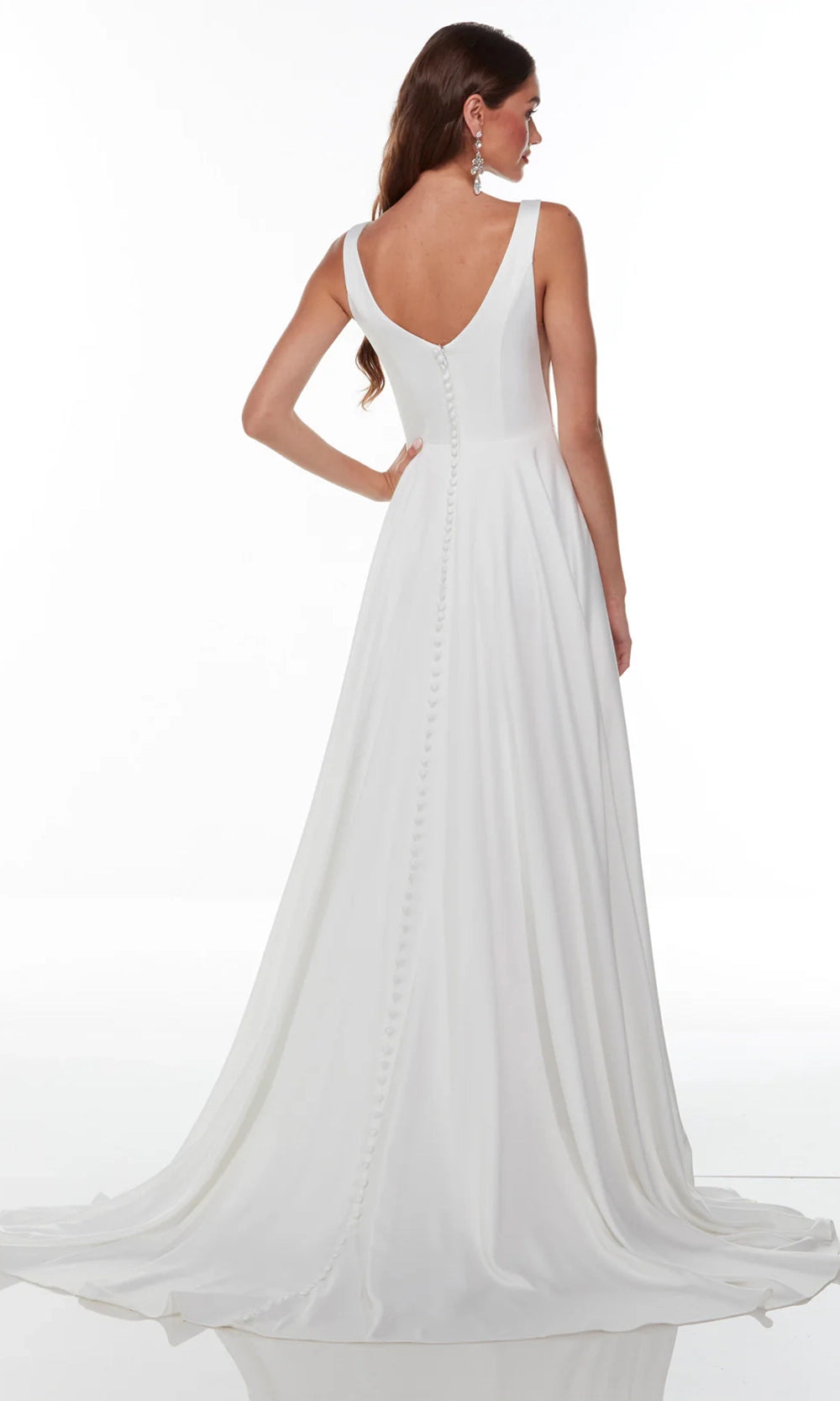 | Details: | Sleeveless, Side Pockets, Sweep Train, V-Open Back, Covered Back Buttons |