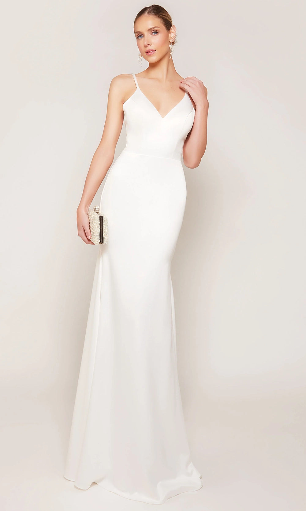 Striking in its simplicity, the Alyce Paris 7090 sheath dress offers sleek lines and a flattering structure. A deep V-neckline supported by beaded spaghetti straps creates an elegant frame, while the smooth satin contours the body. The natural waist provides definition, transitioning seamlessly into a long, flowing skirt that glides with ease. Includes a versatile A-line overskirt that detaches to reveal a sleeker silhouette underneath. Perfect for those who appreciate a clean, sophisticated look, the Alyce Paris 7090 delivers a modern silhouette that embodies grace and confidence from every angle. Model is wearing Diamond White color.
