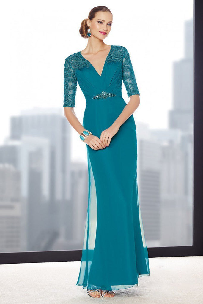 Create a perfect evening wearing this elegant evening gown by Alyce Jean De Lys 29711. The v-neckline bodice has elbow length sleeves enfolded in stylish and romantic lace. This celestial ensemble gathered at the waist with glittering tonal jewels and glides to the full-length hemline in tremendous layers for an elegant black tie style. Look your absolute best and make a night to recall in this Alyce Jean De Lys design. Model is wearing the Teal color.