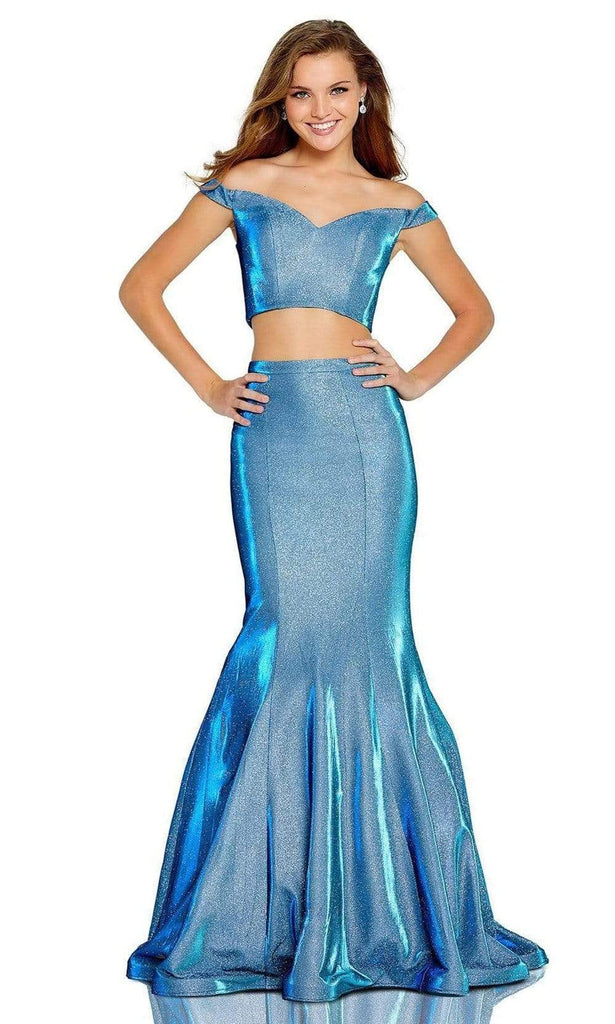 | Details: | Off shoulder sleeves, Glitters, Shimmer, Shiny, Two-piece dress, Back zipper, Fitted, Floor length, Sweep train |
