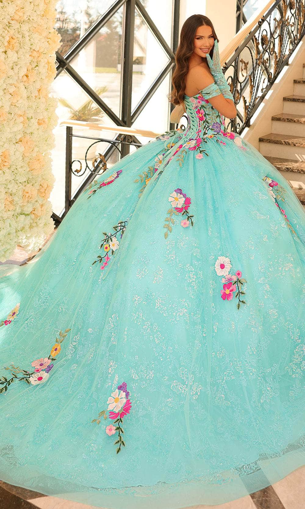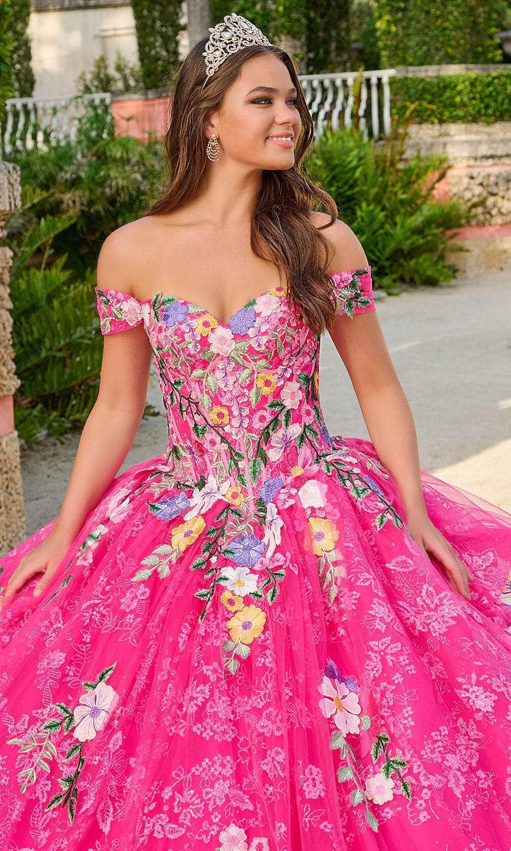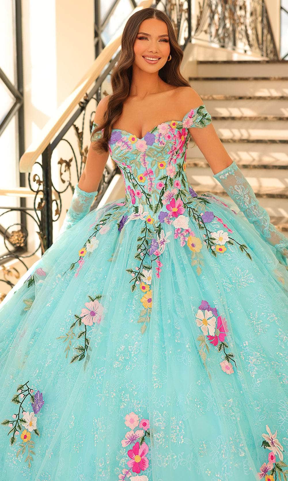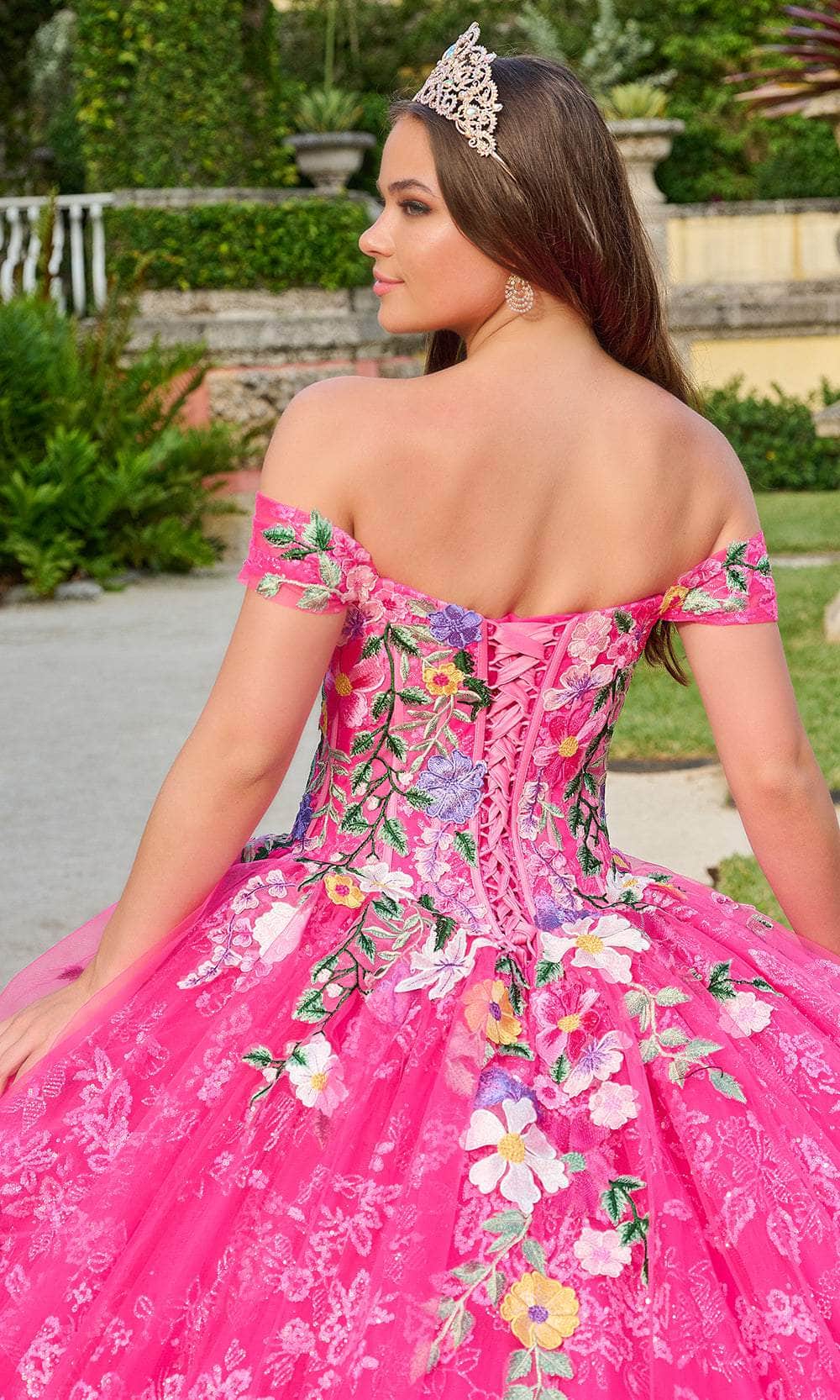 With this stunning quinceañera gown, Amarra 54200, which exudes romance and playfulness, all attention will be on you. Made from the softest tulle and embellished with exquisite flower embroidery, this work of art has an elegant off-the-shoulder sweetheart neckline. Your shape is accentuated by the tailored natural waistline, and you have a regal profile thanks to the full-length ball gown style enveloping layers of luxury fabric. This Amarra 54200 is ideal for your quinceañera or any other special occasion, since it promises to take you to a realm of enchantment and wonder where dreams come true. Models are wearing Aqua/Multi and Fuchsia/Multi colors.