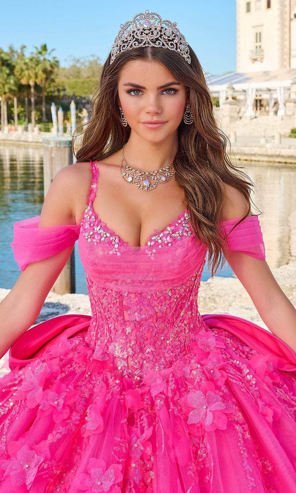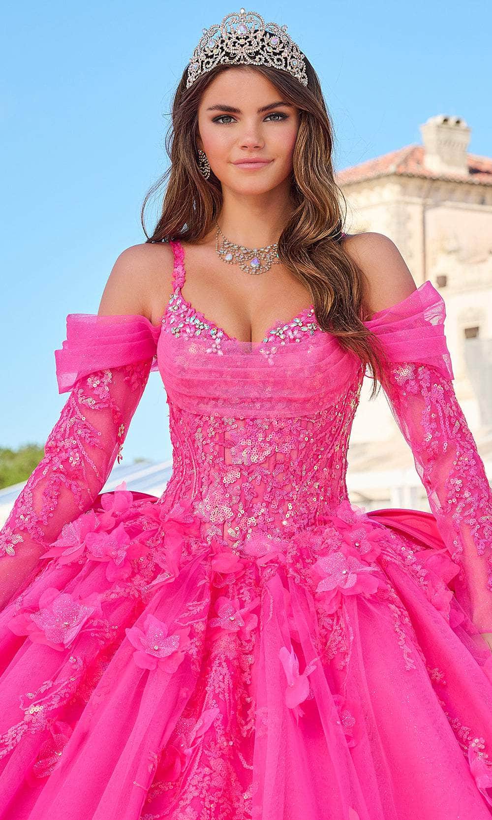 Have an enchanted evening at the ball in this gorgeous Amarra 54204, a breathtaking gown crafted from sumptuous tulle adorned with intricate embroidery and shimmering embellishments. The semi-sweetheart neckline delicately frames your collarbone and upper chest, exuding timeless elegance. Adding a touch of drama and romance are the detachable lace sleeves, which elevate the gown's allure with their ethereal charm. With a defined waistline accentuated by the corset-style bodice, you will flaunt an hourglass silhouette that is simply divine, ensuring you make a memorable statement at any event. Exude elegance in this Amarra 54204. Models are wearing Dusty Lilac, Hot Pink colors.