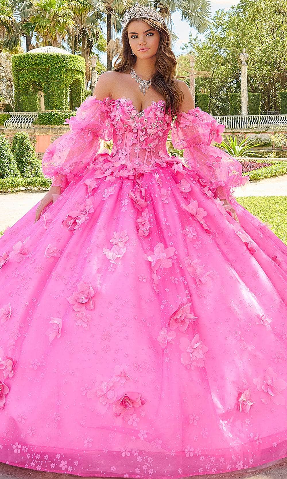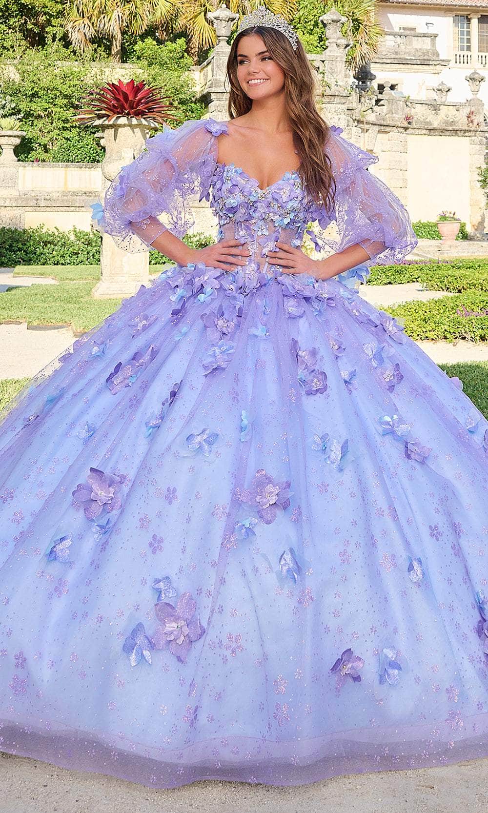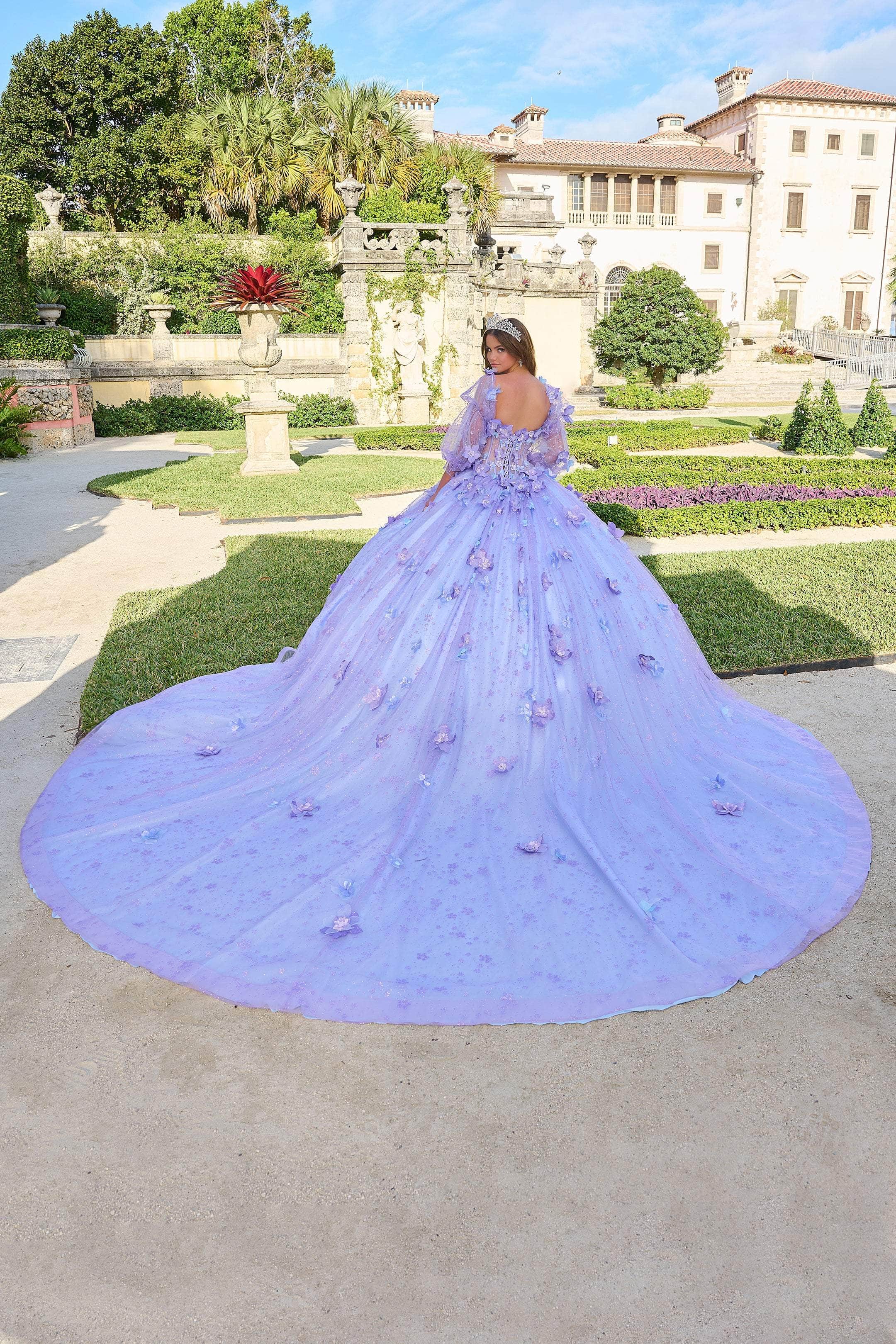 | Details: | Sheer Corset Bodice, 3D Floral Applique, Detachable Bishop Style Sleeves, Lace-Up Back, Train |