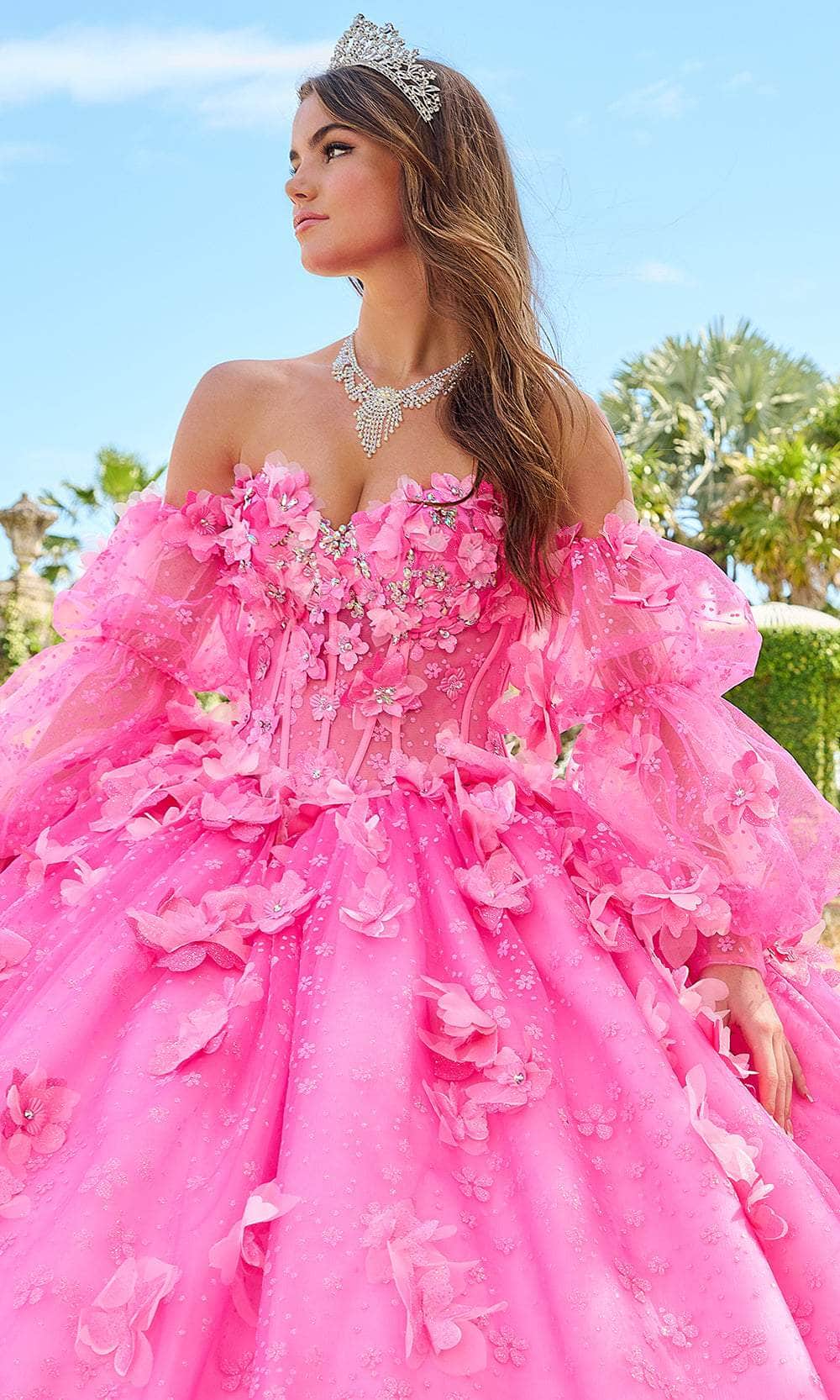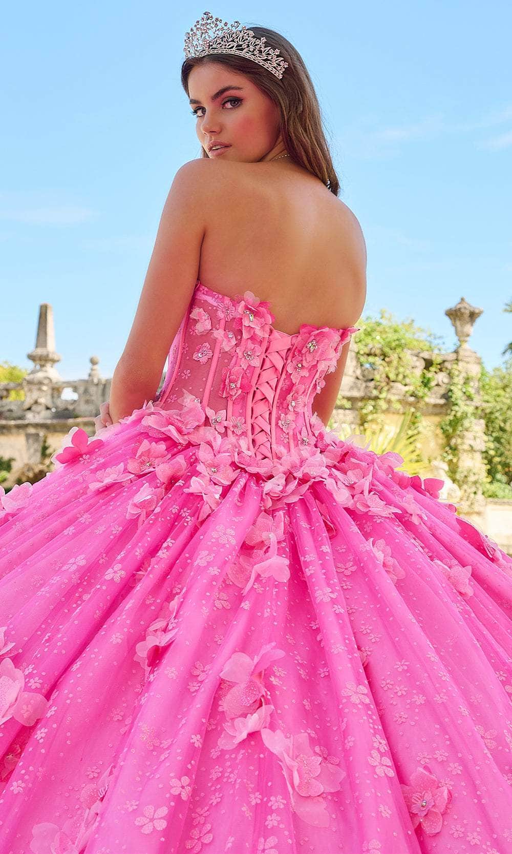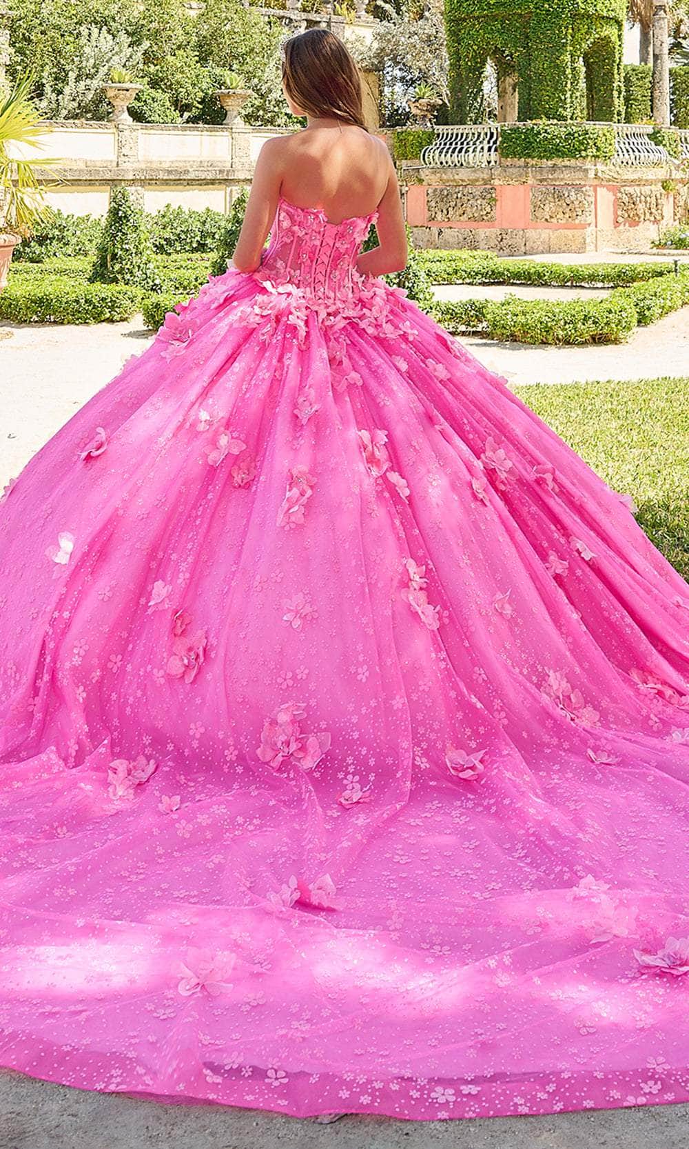 Make a queenly entrance with this Amarra 54218 gown, a masterpiece of sophistication and luxury. Crafted from shimmering glitter tulle, this exquisite dress is adorned with intricate floral embellishments and delicate beadwork, adding a touch of glamour to every step you take. The strapless sweetheart neckline frames the décolletage with timeless grace, while the voluminous ball gown skirt cascades into a dramatic train, creating an enchanting silhouette that is sure to leave a lasting impression. Perfect for grand events and special occasions, this Amarra 54218 is a symbol of timeless beauty and sophistication. Models are wearing Fuchsia/Pink and Lilac/Light Blue colors.