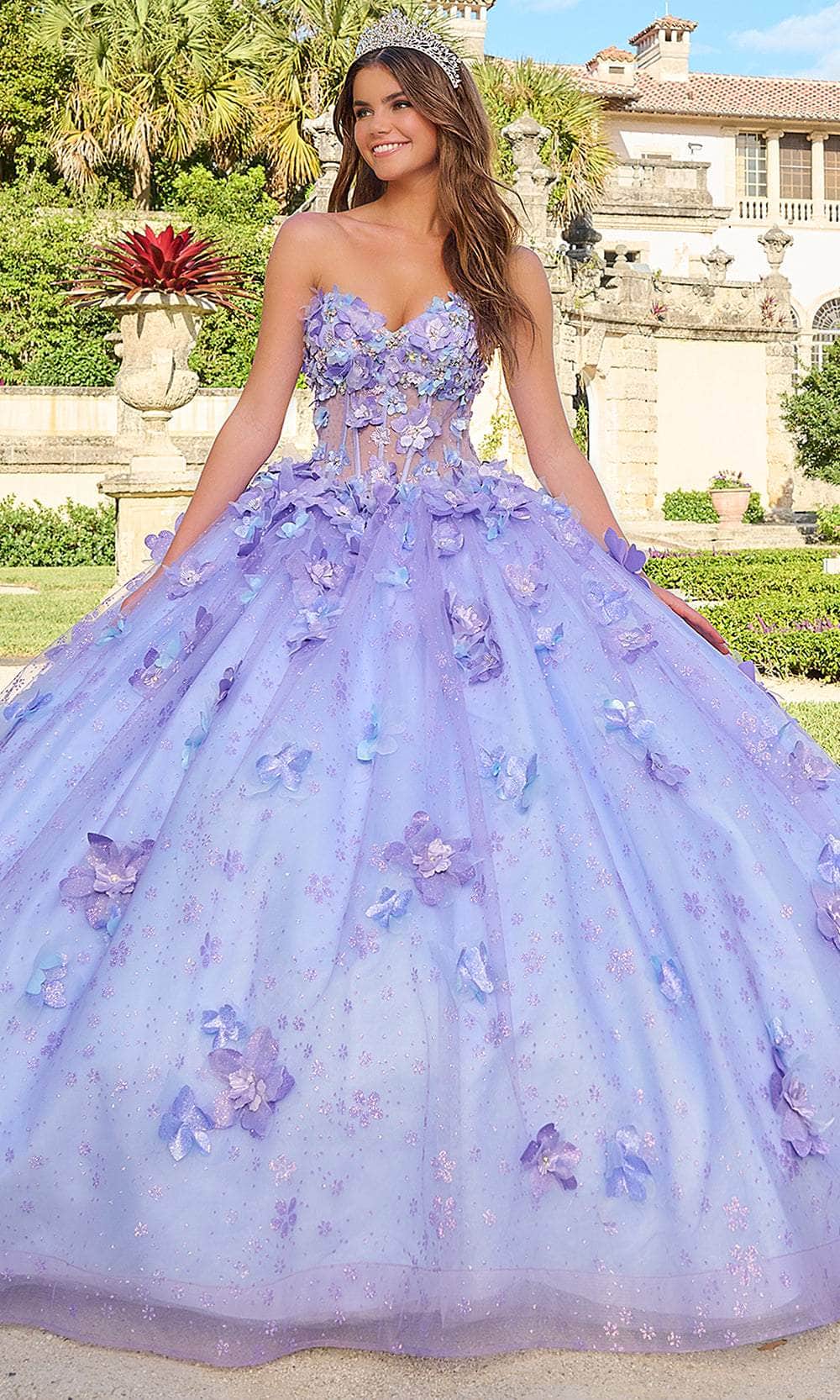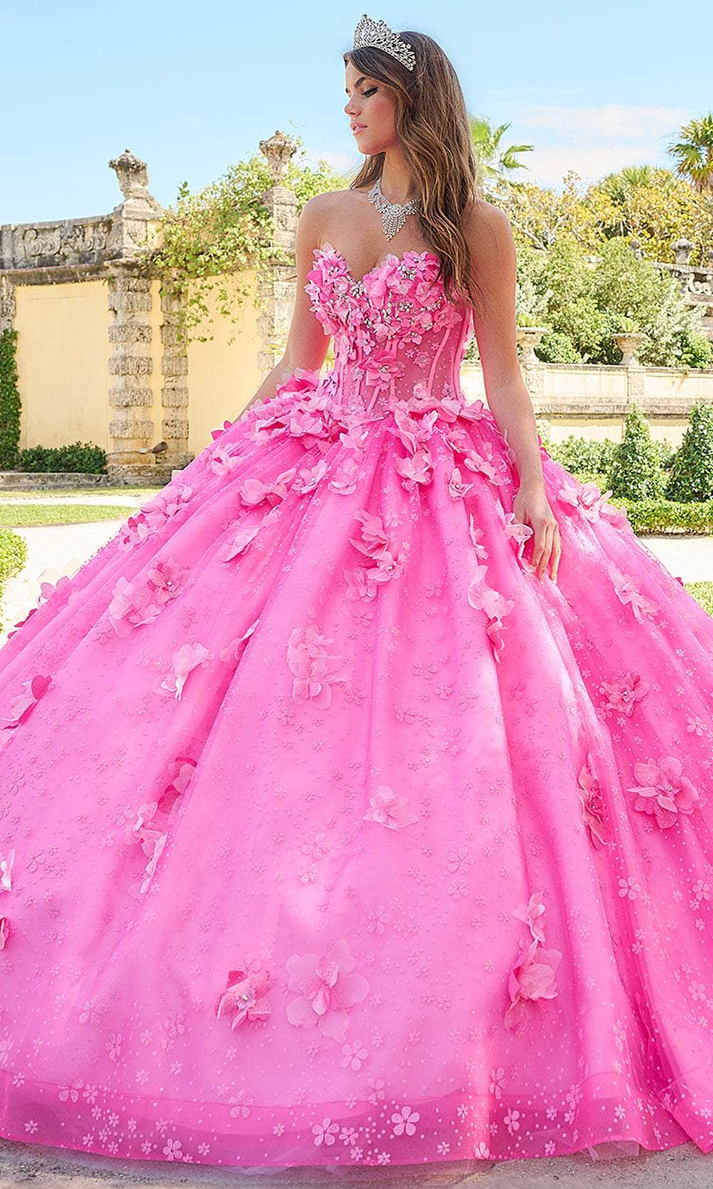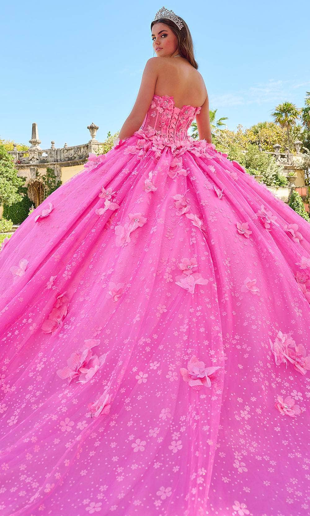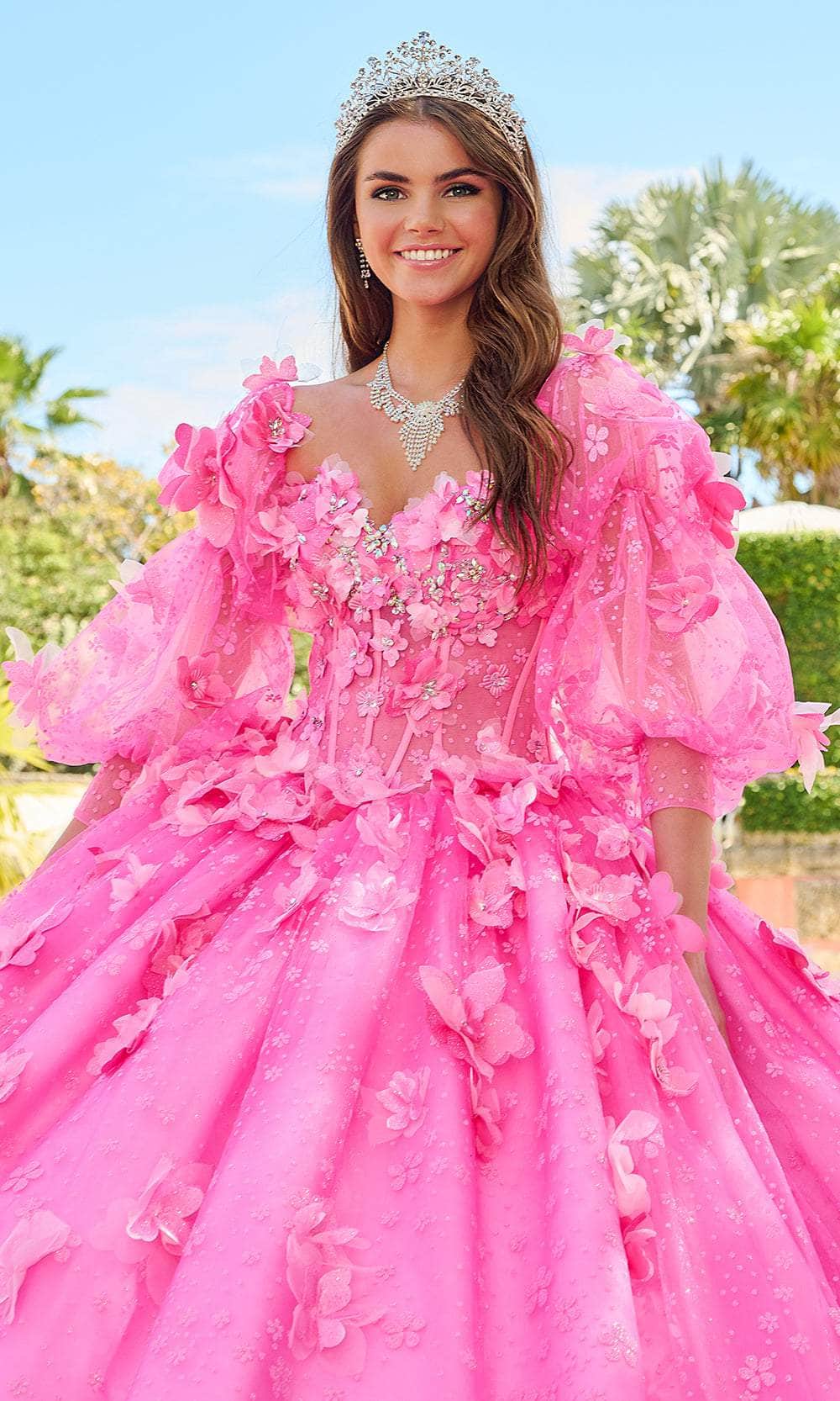 Make a queenly entrance with this Amarra 54218 gown, a masterpiece of sophistication and luxury. Crafted from shimmering glitter tulle, this exquisite dress is adorned with intricate floral embellishments and delicate beadwork, adding a touch of glamour to every step you take. The strapless sweetheart neckline frames the décolletage with timeless grace, while the voluminous ball gown skirt cascades into a dramatic train, creating an enchanting silhouette that is sure to leave a lasting impression. Perfect for grand events and special occasions, this Amarra 54218 is a symbol of timeless beauty and sophistication. Models are wearing Fuchsia/Pink and Lilac/Light Blue colors.