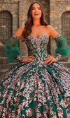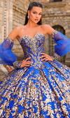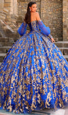Make your quinceañera a dream come true in the opulent Amarra 54238 ball gown. Designed with a sweetheart neckline and detachable sheer tulle puff sleeves, this gown exudes sophistication and grace. The fitted bodice sparkles with intricate stone accents, leading to a corset-style back that highlights your silhouette beautifully. The grand skirt, adorned with rich beading and a cascading sequin pattern, creates a mesmerizing flow to the hem. Subtle shimmer enhances its regal allure, making this Amarra 54238 a stunning choice for your special celebration. Models are wearing Emerald and Royal Blue colors.