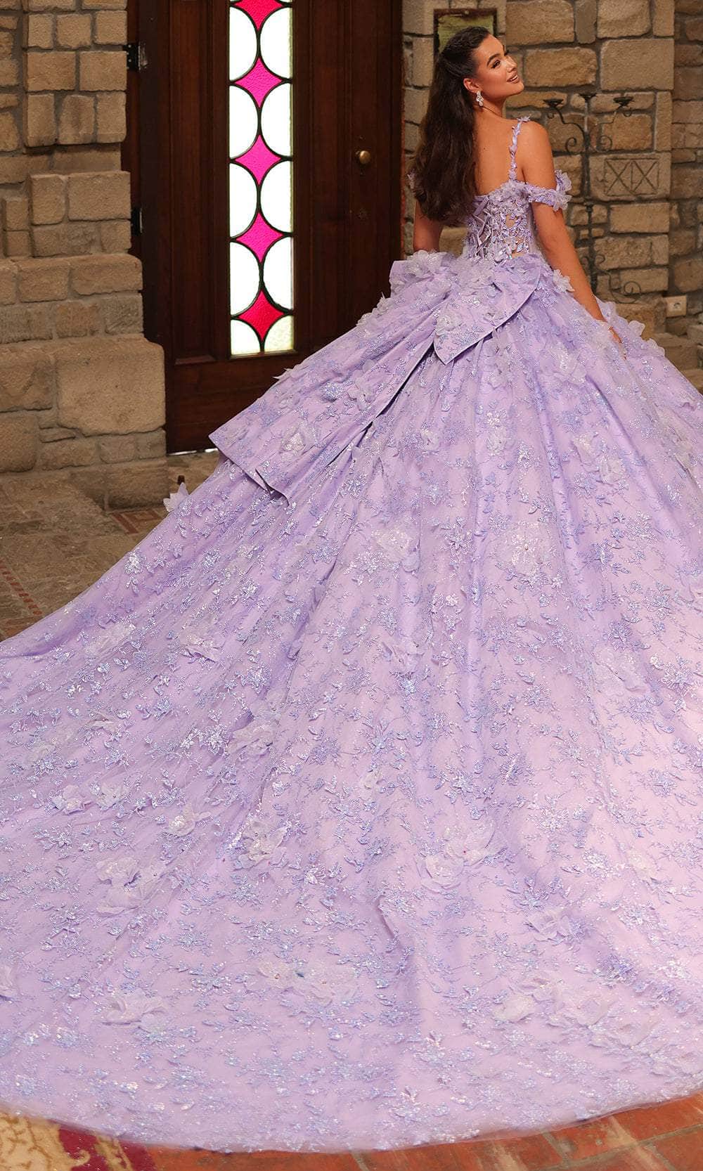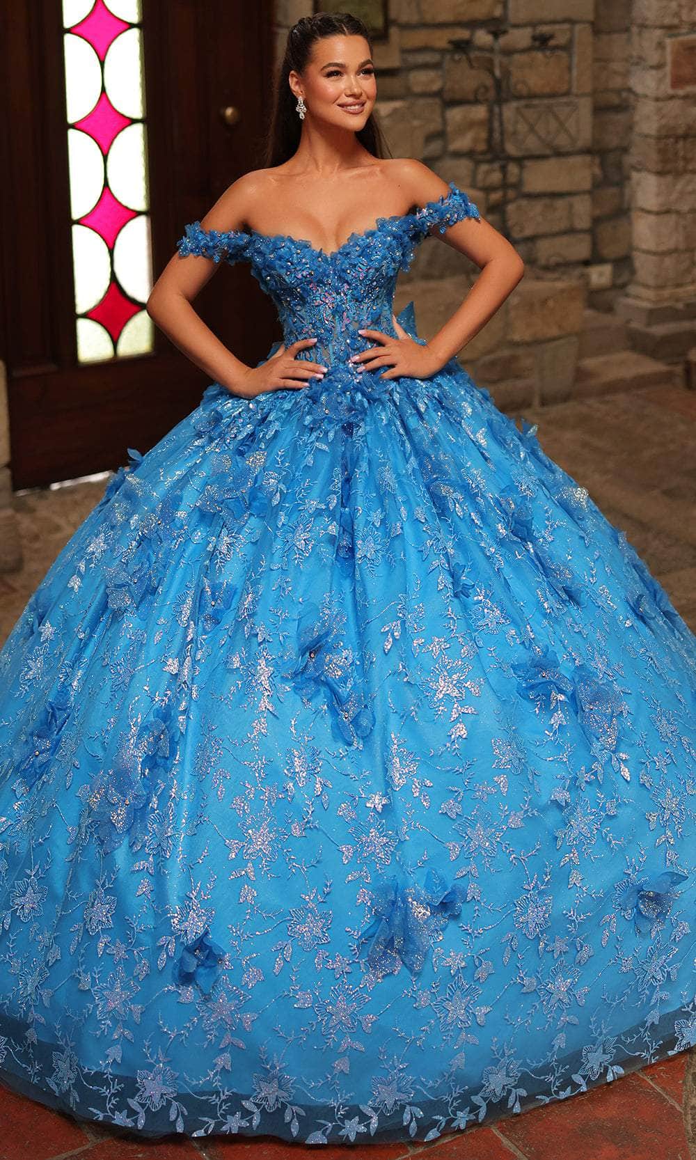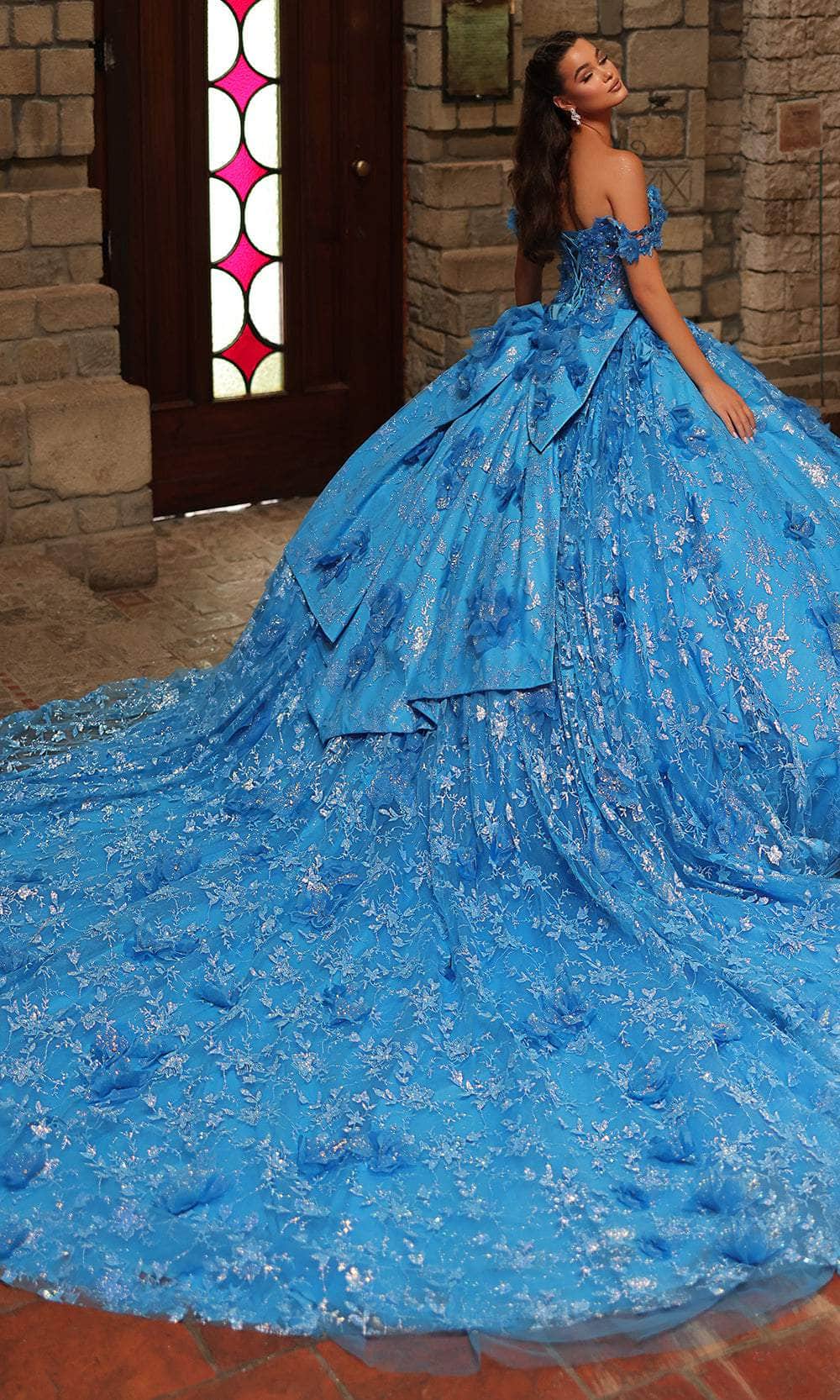 Embrace elegance and romance in the exquisite Amarra 54243 gown. This stunning ball gown features a delicately detailed sweetheart neckline with off-the-shoulder straps, adding a touch of grace and sophistication. The corset-style bodice is adorned with elaborate floral appliqués and sparkling beadwork, offering a luxurious and romantic look. A voluminous layered tulle skirt shimmers with stunning embellishments and floral designs, flowing beautifully into a dramatic ball gown silhouette. Completing this fairytale look is a breathtaking cathedral-length train, extending with intricate detailing for a truly regal finish. Step into a fairytale with the enchanting Amarra 54243. Models are wearing Turquoise and Lilac colors.