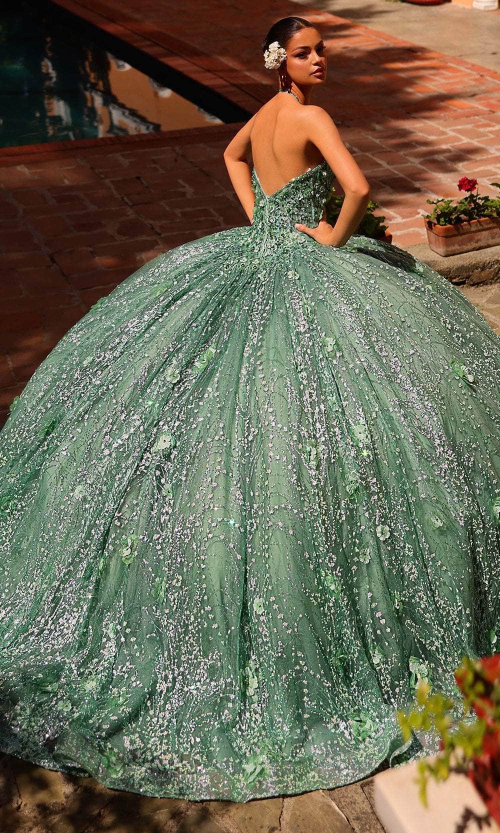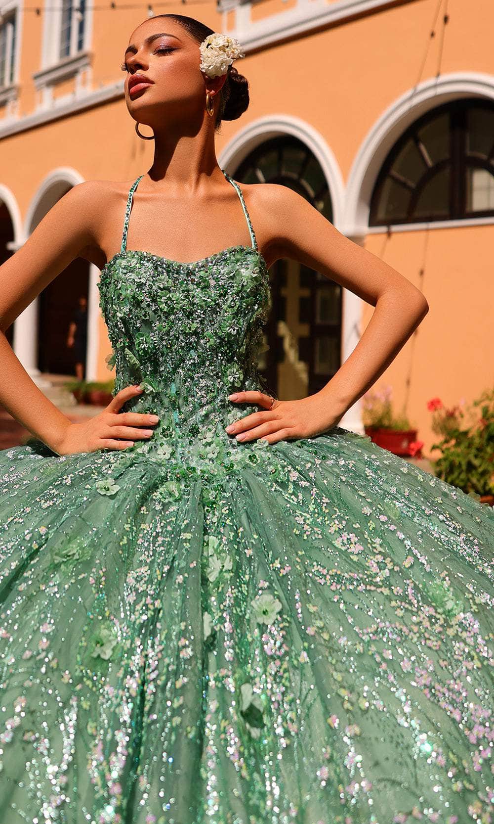 Indulge in the grandeur of this beautiful Amarra 54248 creation. Expertly handcrafted with 3D floral applique, beaded with shimmering stones, and embroidery, this strapless gown embodies elegance and grace. It consists of a sweetheart neckline, and a detachable cape with a remarkable petal cathedral train finish. The skirt makes a voluminous ballgown silhouette that gracefully pools into the sweeping train, creating an air of pure enchantment. Be the spotlight wearing this extravagant Amarra 54248 long gown. Models are wearing Lilac, and Sage colors.