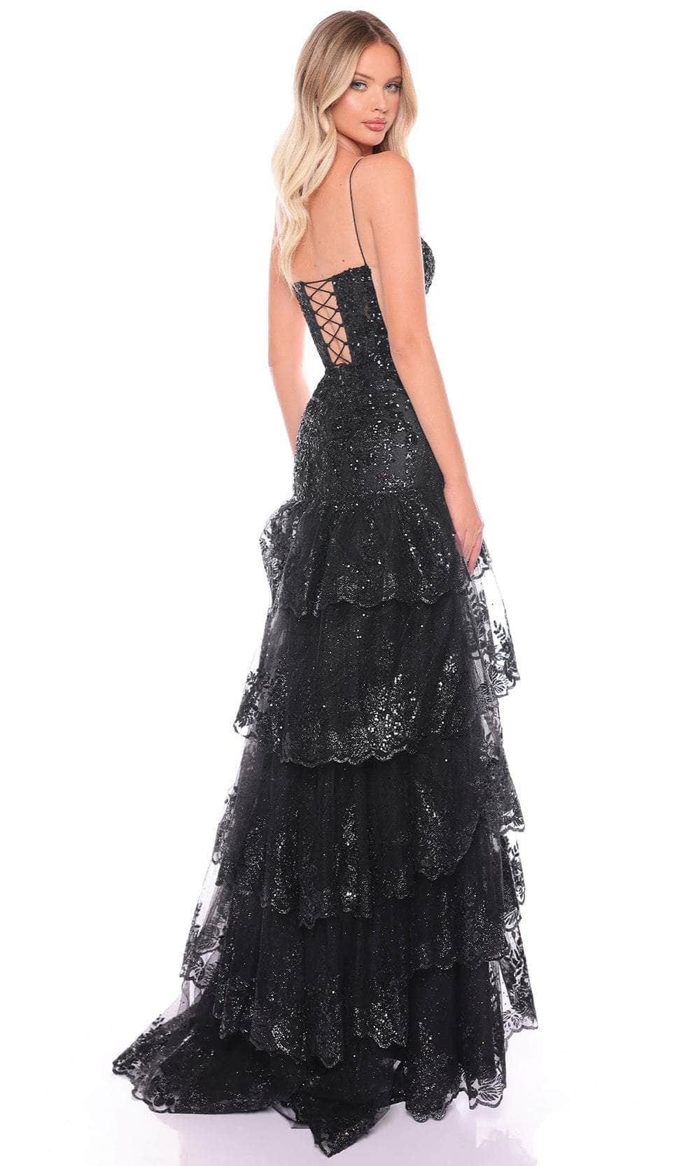Create a night that you will never forget in this stunning Amarra 88500 dress, adorned with subtle yet striking sequin embellishments that capture and reflect light, infusing the fabric with a delicate shimmer. Its sleek design features a plunging neckline and delicate spaghetti straps, offering a touch of allure. Fitted through the bodice and hips, it gracefully flares into layered, ruffled tiers from the mid-thigh, adding a playful yet elegant touch. The back boasts intricate crisscross details, enhancing its allure. A high slit on the left side reveals a glimpse of the leg, making this dress a timeless choice for any occasion. Captivate the crowd with this Amarra 88500. Models are wearing Black, Light Blue, Red, and Sage colors.