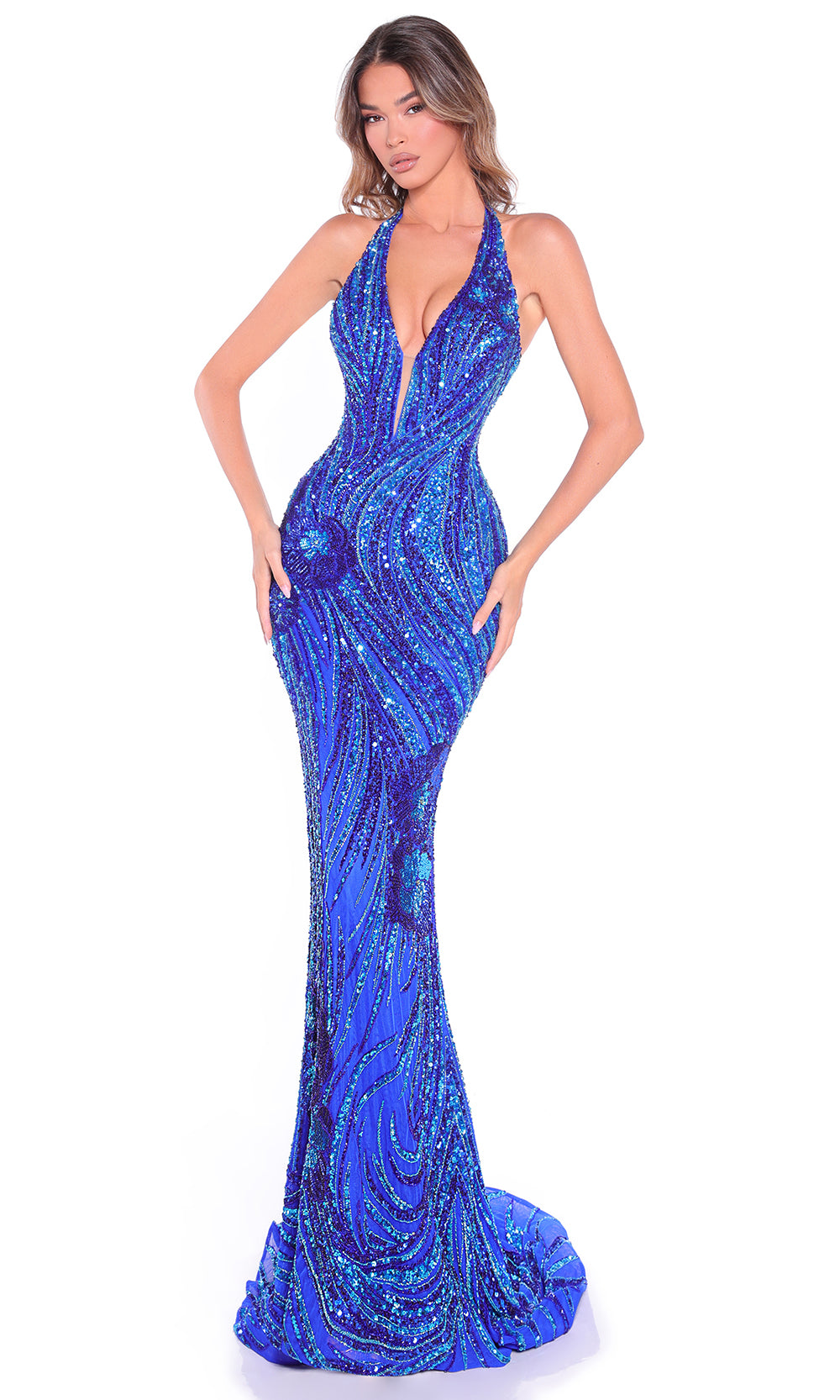 All eyes turn toward the wearer of Amarra 89203 as every motion reveals a blend of glamour and depth. The plunging halter neckline complements the natural form, while the fitted sheath design enhances shape through subtle structure. Hand-beaded details shimmer elegantly, creating a soft interplay of texture and reflection. With a floor-grazing length and confident charm, it offers a flawless balance of modern beauty and timeless presence. Amarra 89203 sleeveless gown is a vision of lasting sophistication. Models are wearing Black/Gold, Bright Royal/Turquoise, Fuchsia/Red, and Jade/Bright Emerald colors.