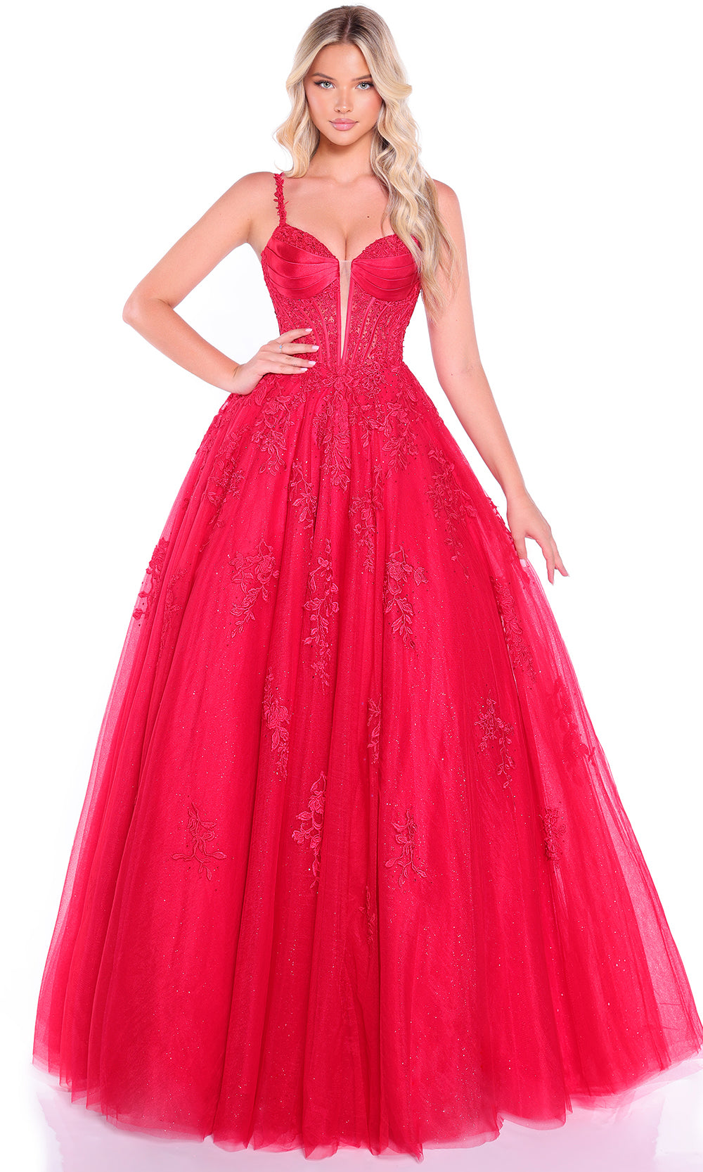 Steeped in regal artistry, Amarra 89493 captures sophistication through intricate detailing and exquisite form. The plunging v-neckline accentuates the decolletage, supported by slender straps that lead into a sculpted corset bodice. A voluminous ballgown skirt cascades gracefully, creating an aura of timeless grandeur. Each embroidery adds depth and texture, evoking luxury and poise. Perfect for grand celebrations or evening galas, Amarra 89493 embodies refined femininity designed to enchant and captivate throughout the night. Models are wearing Emerald, Red, and Slate Blue colors.