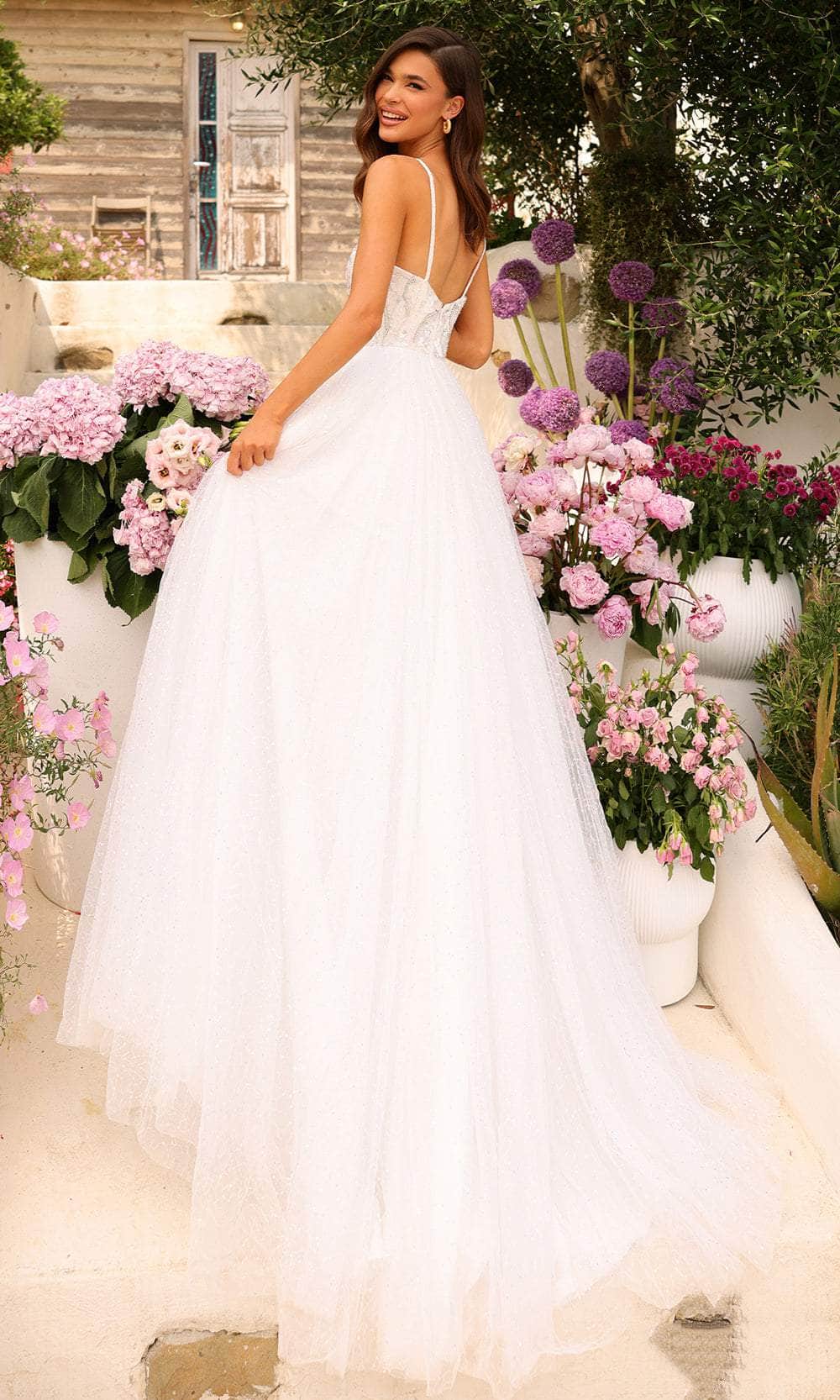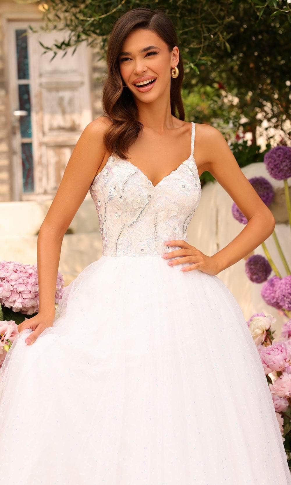Look jaw-dropping in this dramatic Amarra 94020, a spectacular tulle prom gown designed to make you feel like a princess for the night. The dazzling white color of the gown sparkles even more in the light of beaded crystals adorning the shimmering tulle skirt. The beautiful bodice is delicately designed with sequins, and the highlight is the stunningly thin and dainty straps, leading to a sexy backless back. This Amarra 94020 combines elegance and allure, ensuring you stand out and shine at your special event. Model is wearing Ivory color.