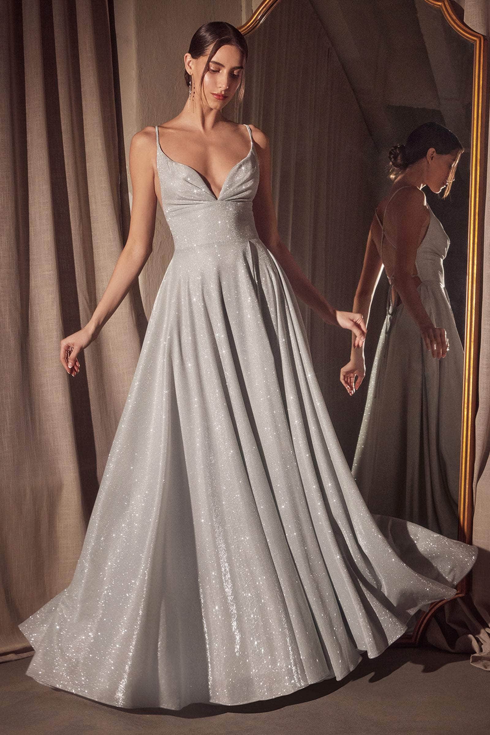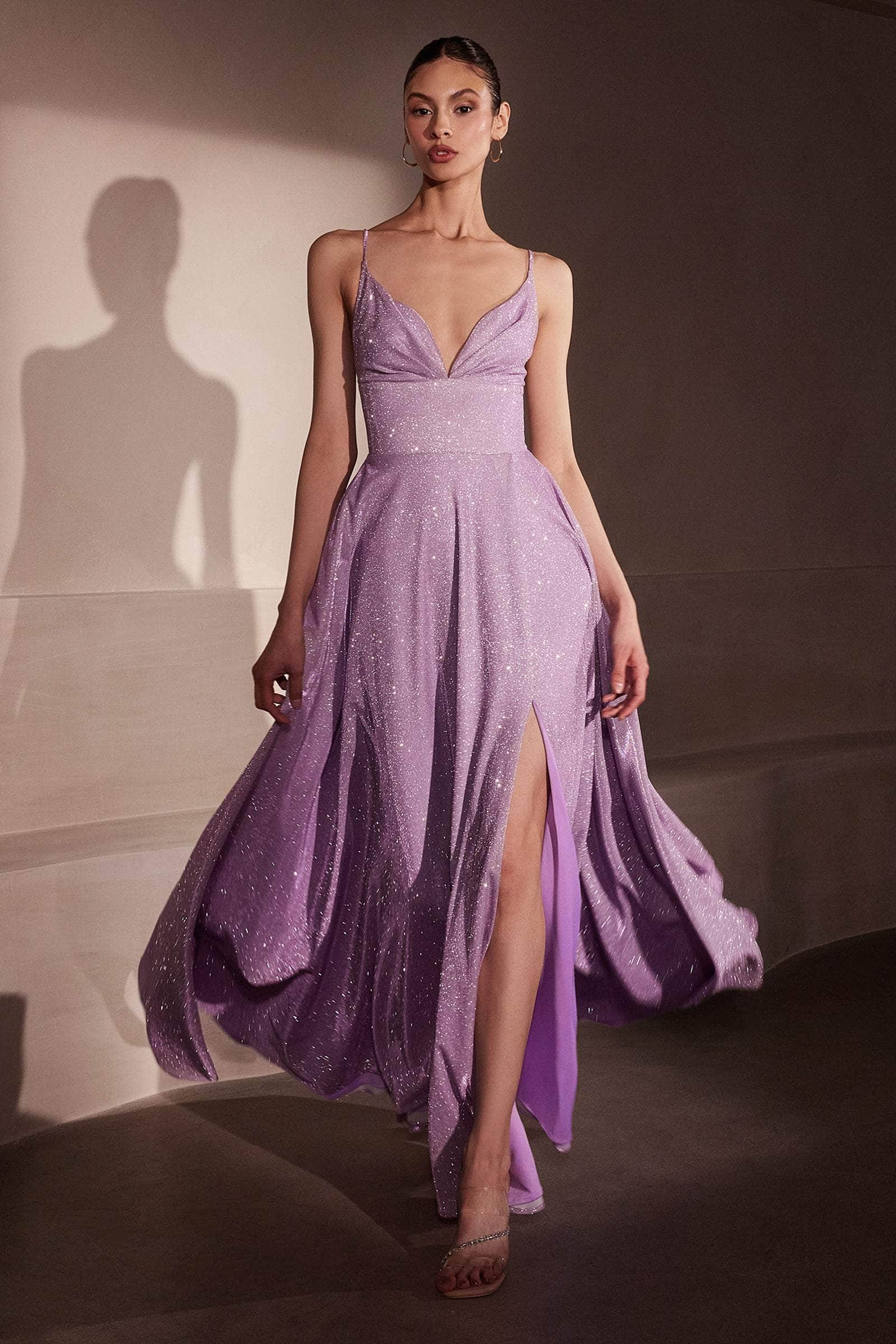Introducing the Amoris T214 - An elegant Lace-Up Back Evening Dress. This captivating gown showcases a sleeveless design with adjustable spaghetti straps and a wide V-neckline. The fitted wide empire waist accentuates your figure, while the pleated full-A-line skirt, complete with in-seam pockets, offers an elegant flow. The open back with a charming lace-up design ensures a flawless fit. Perfect for prom or any special occasion, the Amoris T214 combines grace and sophistication effortlessly. Model is wearing Silver, Lavender, Light Blue, Rose Champagne, Sage, and Black dress.