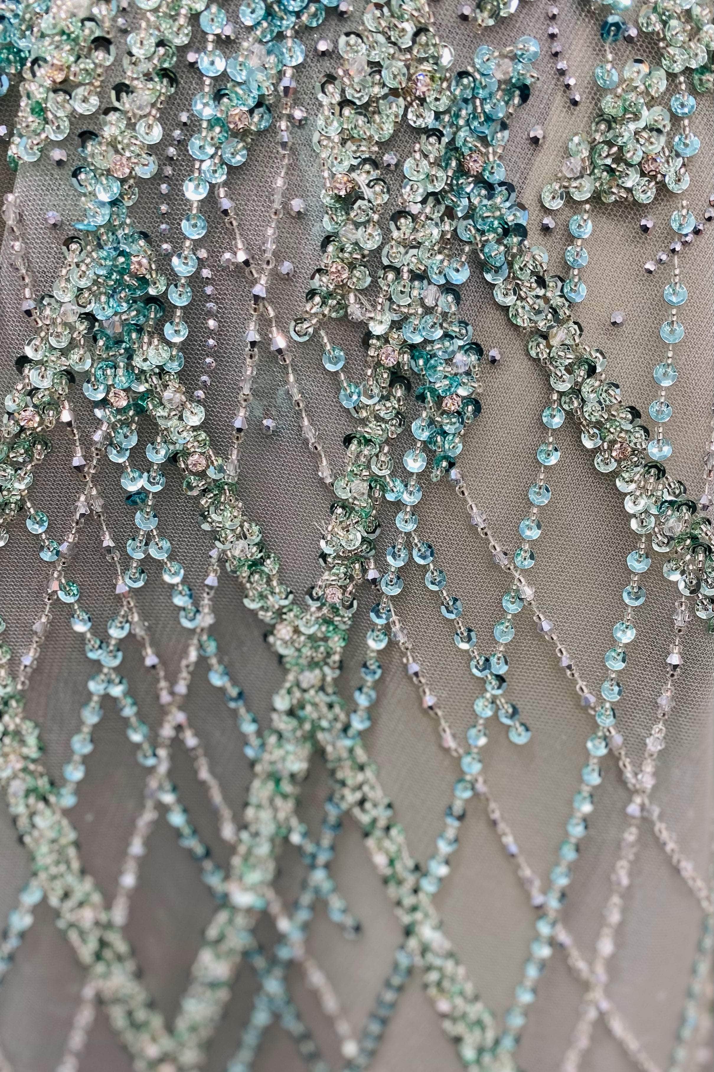 Details: Sleeveless, Beaded, Embellished Waist, V-Open Back, Zipper Closure, Floor Length Hem