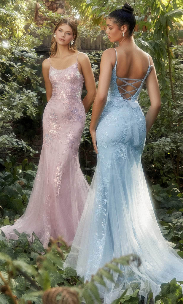 Bloom with loveliness in this detailed creation from Andrea and Leo A1131. Lavishly festooned with dazzling iridescent sequin, lace and beadwork, this sleeveless outfit will steal the spotlight. The gown showcases a scoop neckline held together by thin shoulder straps, and the v-open back has a crisscross lace-up tie design. Accented with tulle godets, the skirt displays a mermaid silhouette that spills into a sweeping train finish. This Andrea and Leo A1131 style will let you celebrate that divine feminine beauty! Models are wearing the Blue and Yellow colors.