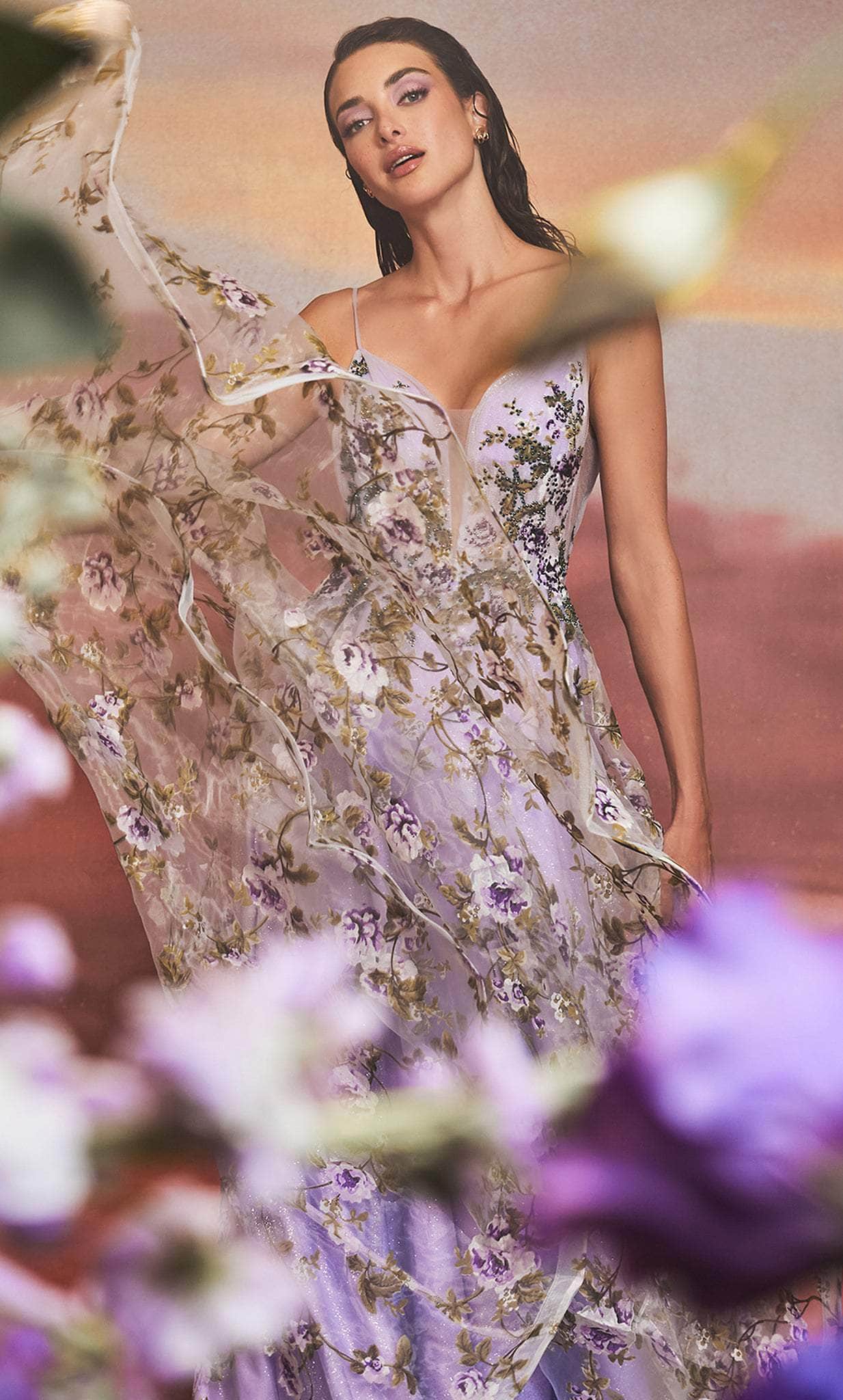 Be ready for people to stop and turn to look at you when you show up in this Andrea and Leo A1135. This lovely piece is enhanced and made even more amazing by the adorable floral prints with bead embellishments all over the fitted sleeveless bodice. For a gorgeous look, the plunging V-neckline is accented with a sheer inset as well as the side panels. The full-length skirt, parades in the form of an A-line silhouette, with a sweep train that falls gracefully to the floor. Wear this Andrea and Leo A1135 to show off your sophisticated style. Model is wearing Lilac color.