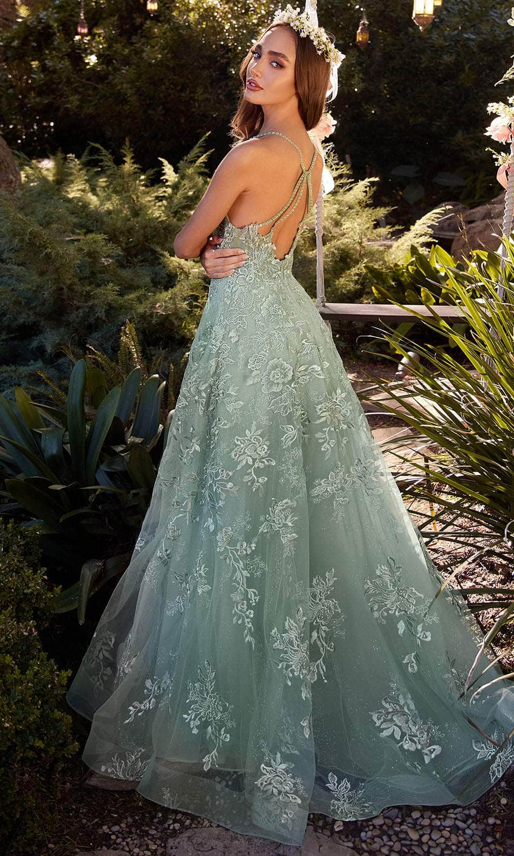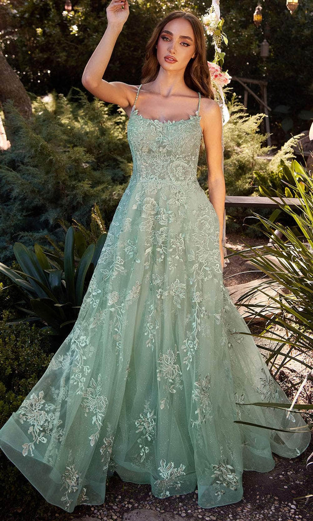 Revel in a timeless romantic tale with this Andrea And Leo A1248 gown—an eloquent interplay of elegance and allure. The scoop neckline delicately frames the decolletage, while fine, slender straps intersect at the back. The skirt, embellished with scattered lace appliques over tulle, creates an ethereal cascade. With each step, allow the A-line silhouette and delicate lace appliques to sweep you into a realm where elegance takes center stage. Seize your moment in the spotlight with this exquisitely designed Andrea And Leo A1248 masterpiece. Models are wearing the Blue and Sage colors.