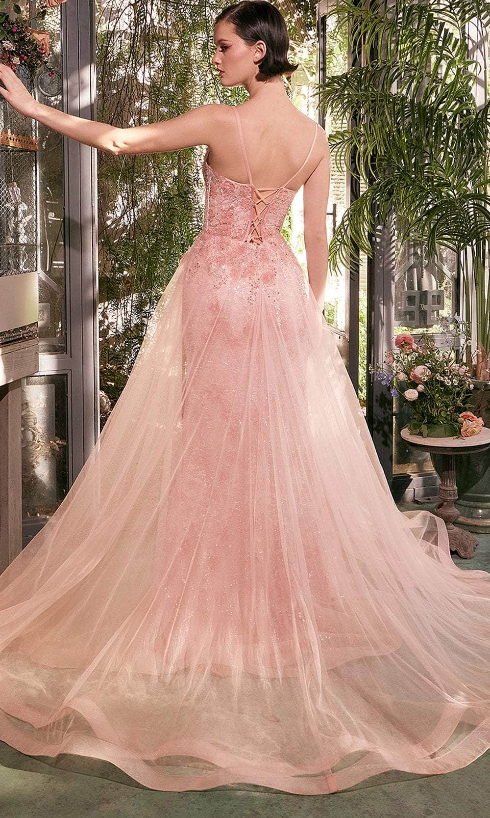 Capture every heart with your brilliance in this Andrea and Leo A1382 masterpiece. Beaded and floral appliques are used to embellish this sleeveless gown with timeless romance and shimmering details. Spaghetti straps and exposed boning on the corset bodice bring beautiful support. Additional stand-out details are the scoop neckline, tulle A-line overskirt, and crisscross lace-up closure in the open back. The fitted sheath skirt dazzlingly streams to the floor length, finished with thigh-high leg slit and sweeping train. Shine as the ultimate belle of the night in this Andrea and Leo A1382 gown. Models are wearing Blush, and Lavender colors.