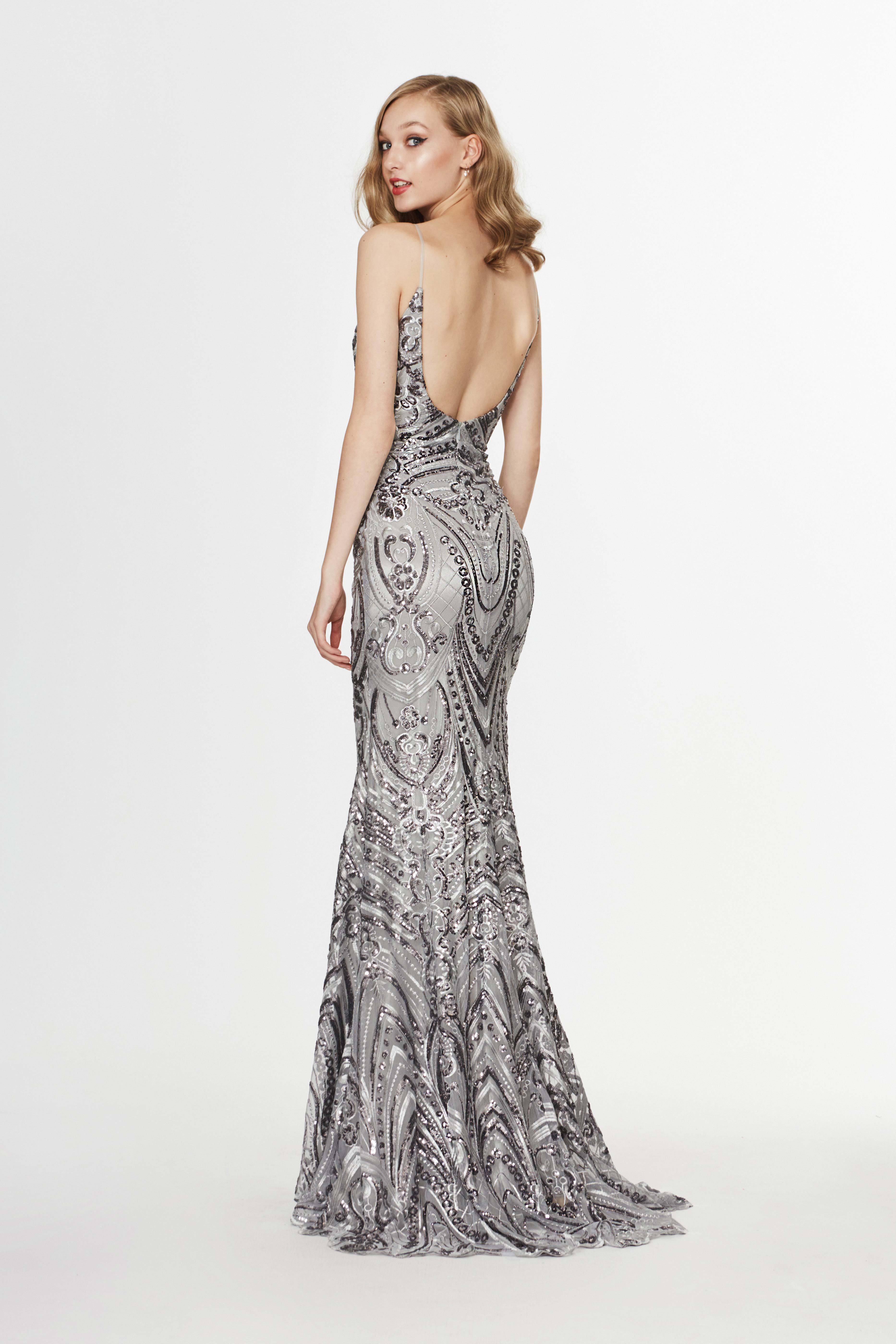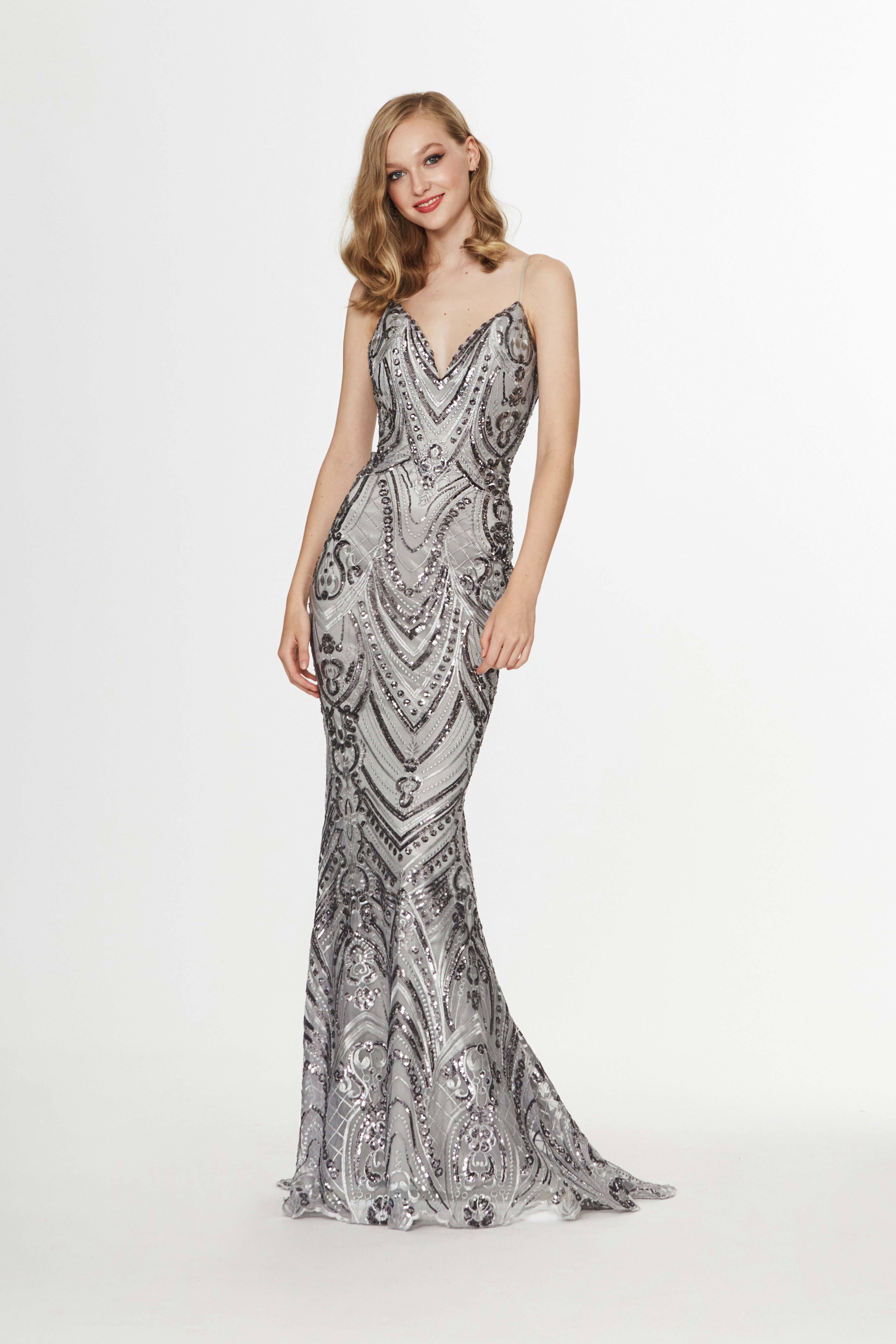 Show off your classy style when you wear this design by Angela & Alison 91107. Charms in a sleeveless, plunging V-neckline with fitted bodice ornate with sequins and beading. The back has a low scoop cut and a zipper closure. The fitted bodice flourishes a full length trumpet skirt with a sweep train finish. Steal the show in this dazzling Angela & Alison dress.