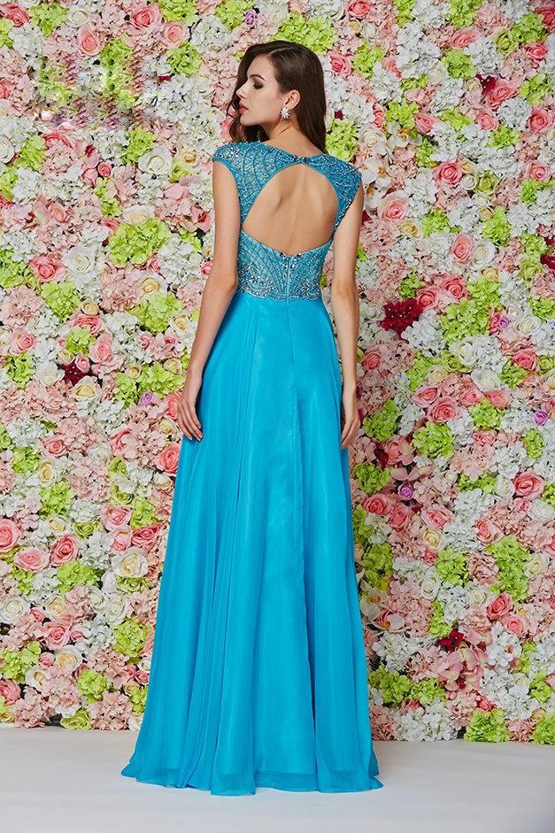 | Details: | Cap sleeves, Lace appliqued bodice, Beaded, Sequin, Keyhole Cutout, Fully lined, Back zipper closure |