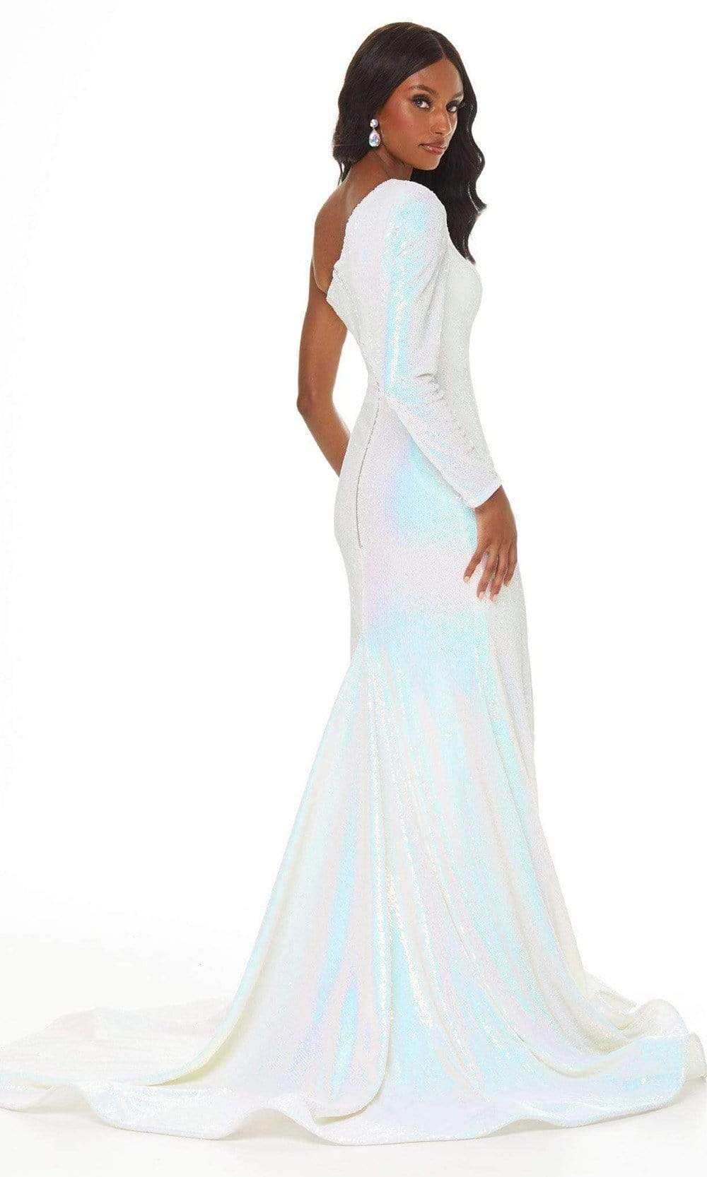 | Details: | Long Sleeve, One Shoulder, Allover Sequin, High Slit, Open Back, Back Zipper Closure, Court Train |