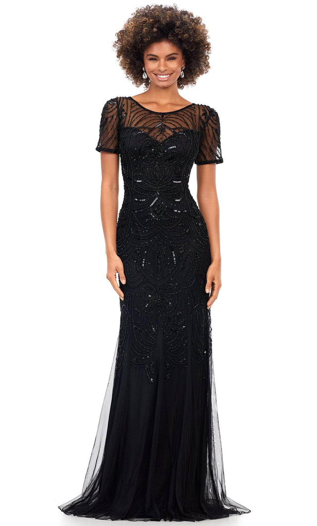 Glow with utmost beauty in this romantic Ashley Lauren 11215 creation. Covered in glittering beadwork and sequins in a contrasting pattern, this style is sure to turn heads. It features an illusion scoop neckline with a sweetheart lining and short sleeves. Displaying a partial sheer full back with a zipper closure at the center, the full length skirt is accented with godets detailing to form a mermaid silhouette. An alluring sweep train completes this look. Turn into such an irresistible vision that captures everyones interest in this Ashley Lauren 11215 masterpiece. Models are wearing the Black and Gold/Rose Gold colors.