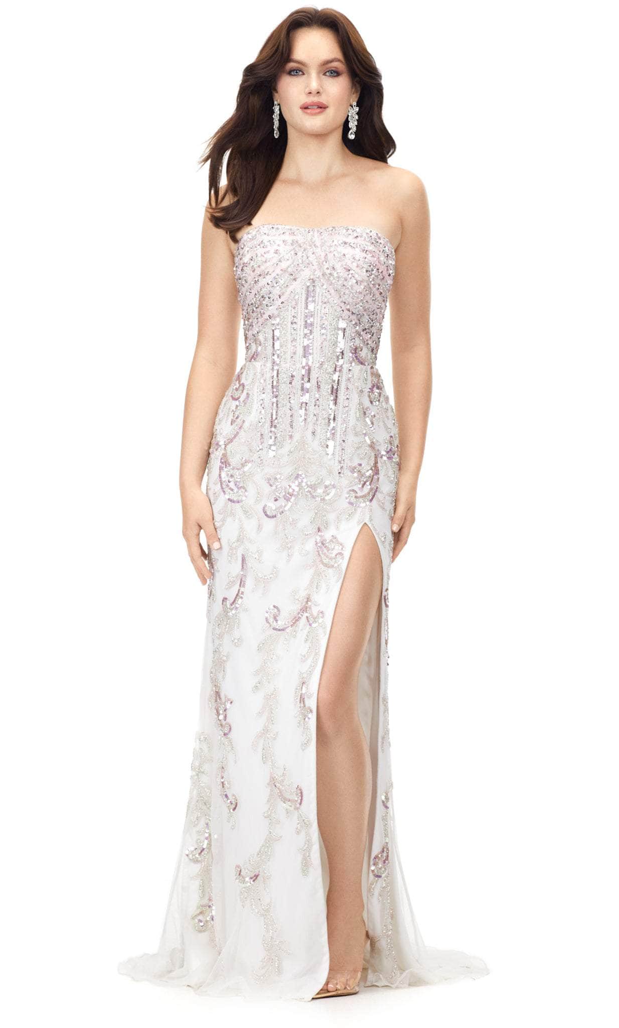 | Details: | Strapless, Beaded, Slit, Train, Back Zipper Closure |