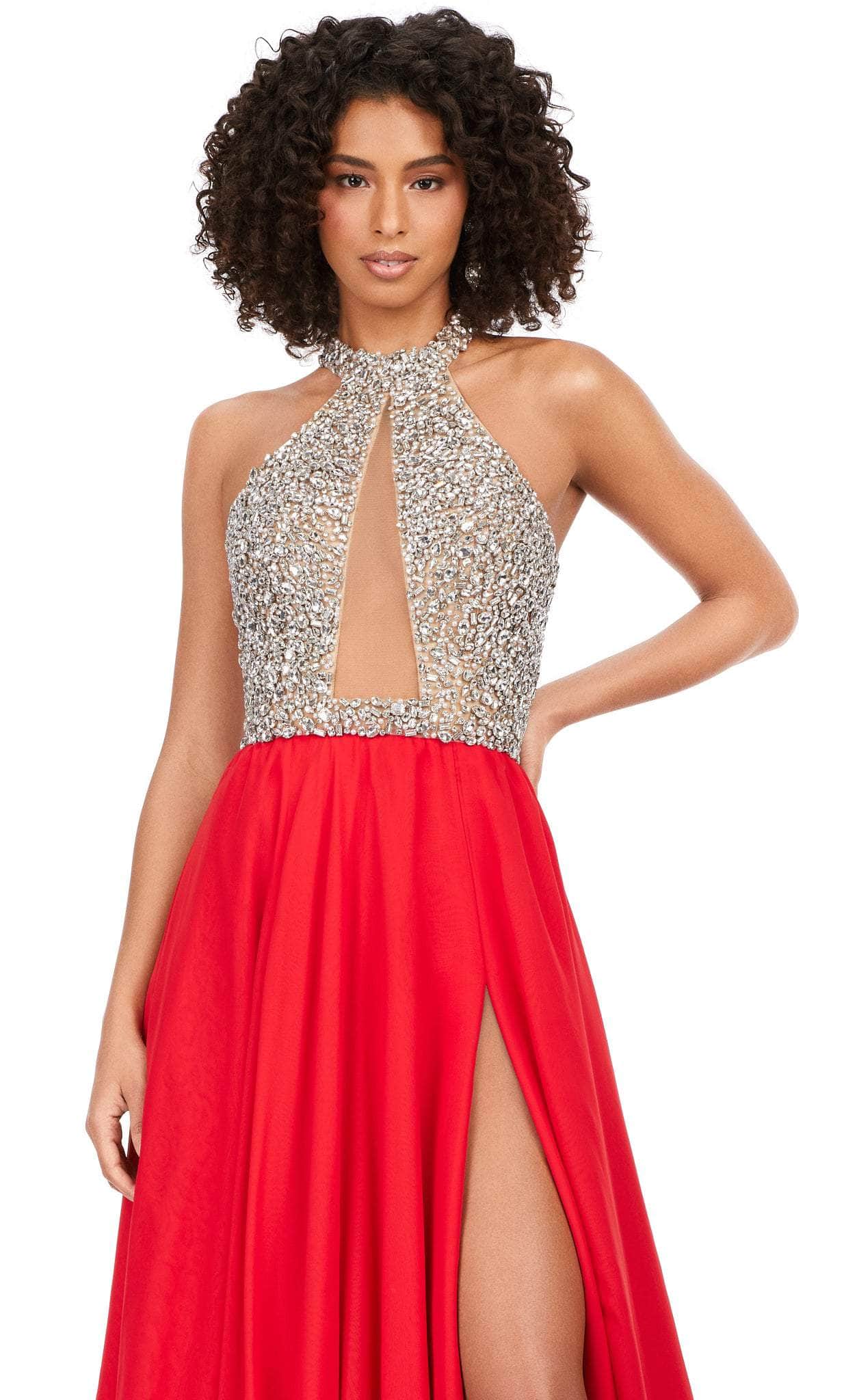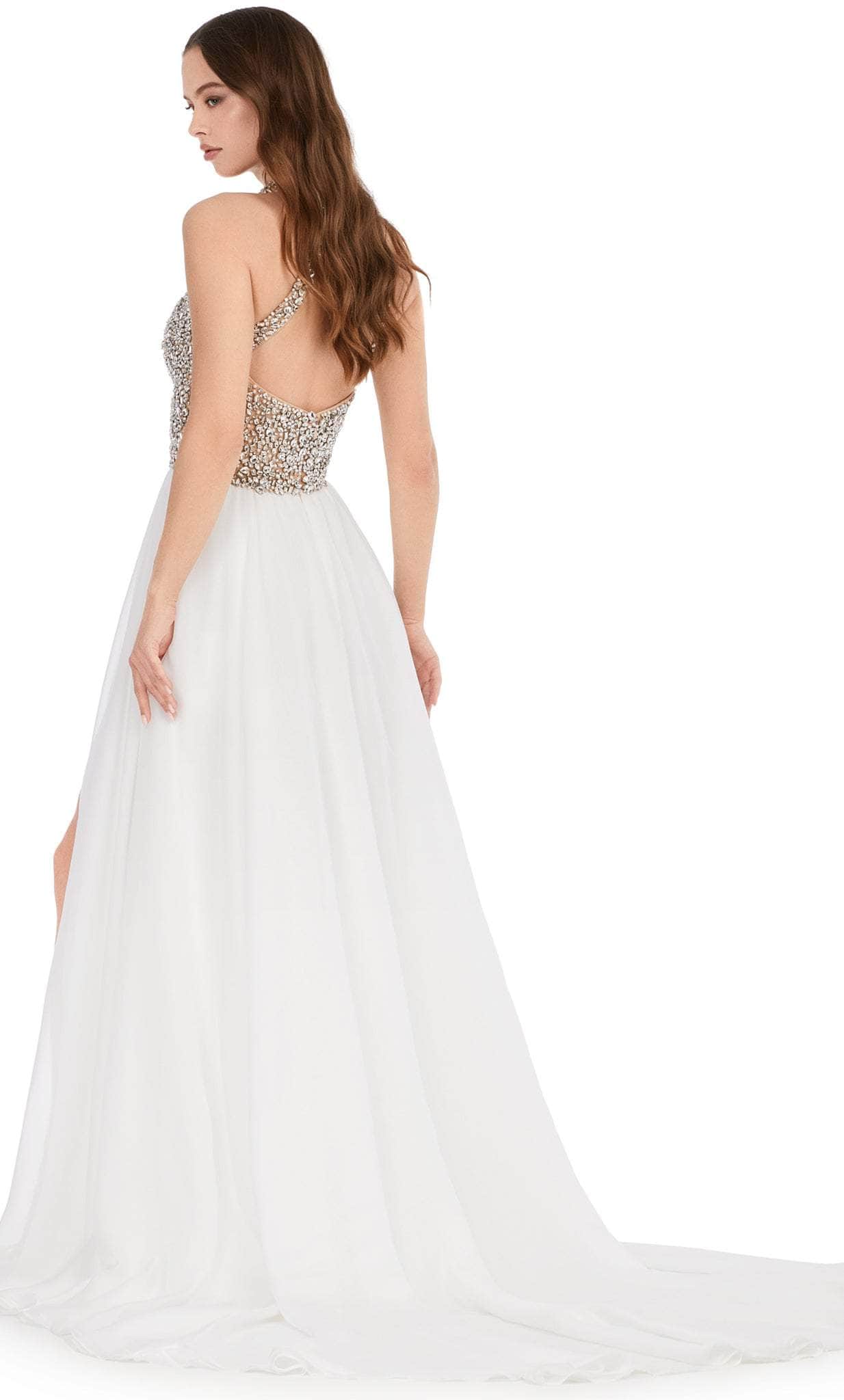 Promote attention-grabbing style in this stunning Ashley Lauren 11248. Look fantastic with this dress' beautifully beaded bodice in a halter neckline design which features an illusion keyhole cut out across the bust area. Down the normal waistline on the other hand, is an A-line skirt that is made complete with a left high leg slit that stretches down to the sweep-trained hemline. Ashley Lauren 11248 is really perfect for a standout style and flawless fit. Models are wearing Ivory and Hot Pink colors.