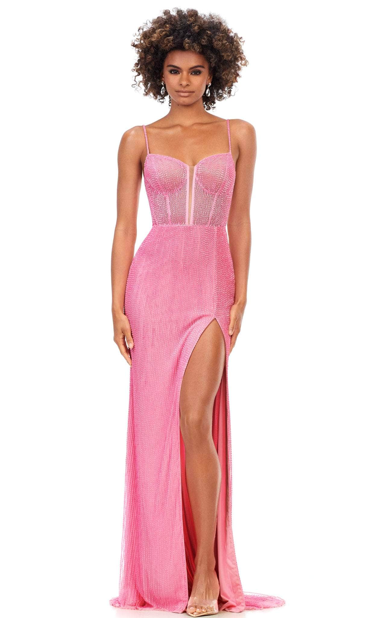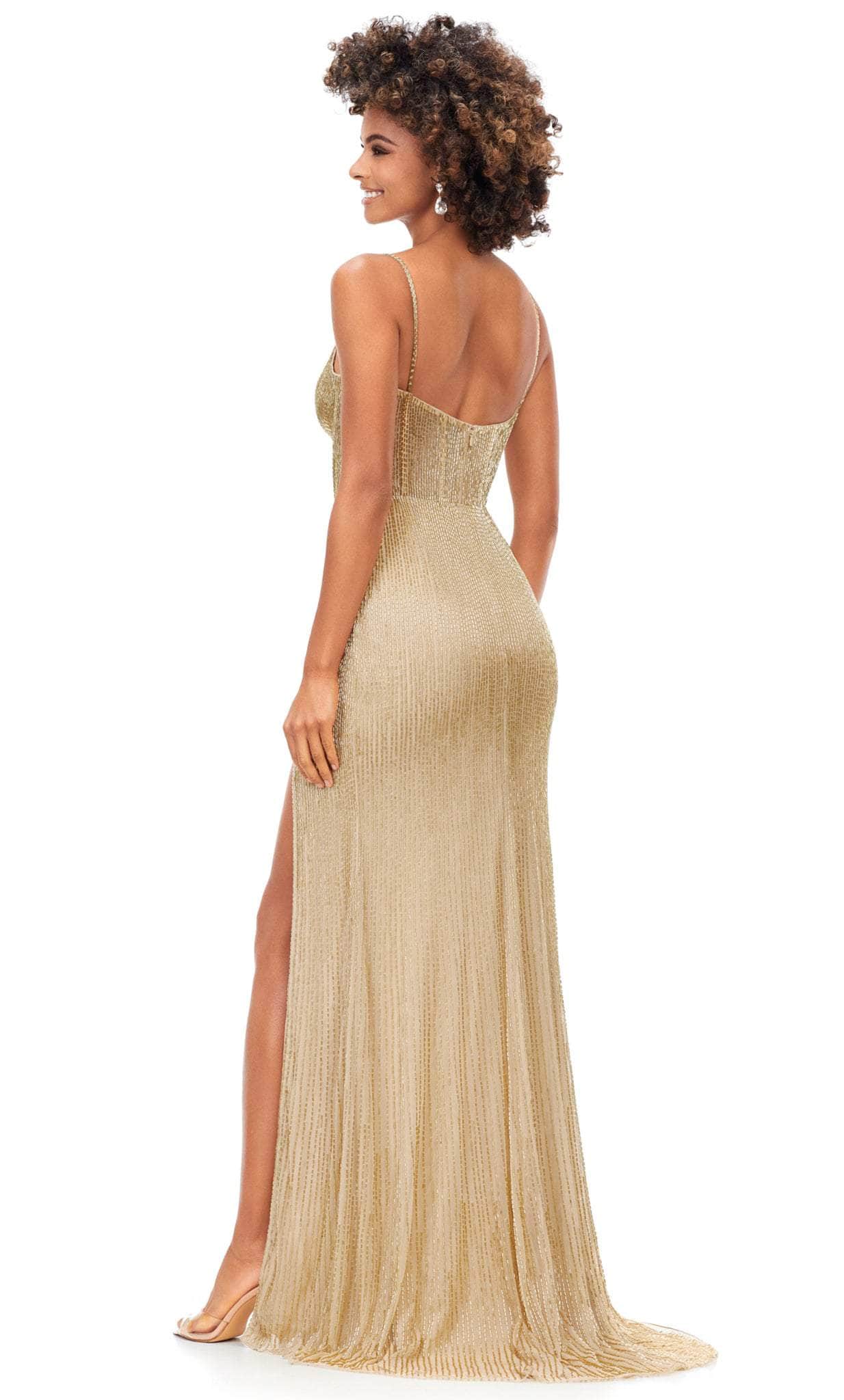 Showcase a classy vibe that exudes exquisite allure in this Ashley Lauren 11369 creation. Adorned with sparkling liquid beaded embellishment that is sure to turn heads. This fitted sleeveless gown displays a plunging sweetheart neckline, spaghetti straps and an exposed bustier to define your curves. The back is cut with a mid-open detail to reveal a sight of skin and is enclosed by a center zipper closure. Accentuated with a thigh-high leg slit, the sheath skirt cascade to the full length hem and sweeping train. Shine with the glow of ever after in this mesmerizingly Ashley Lauren 11369 masterpiece. Models are wearing the Aqua, Black, Bright Royal, Candy Pink, Coral, Emerald, Gold, Ivory, Periwinkle, Purple, Raspberry and Red colors.