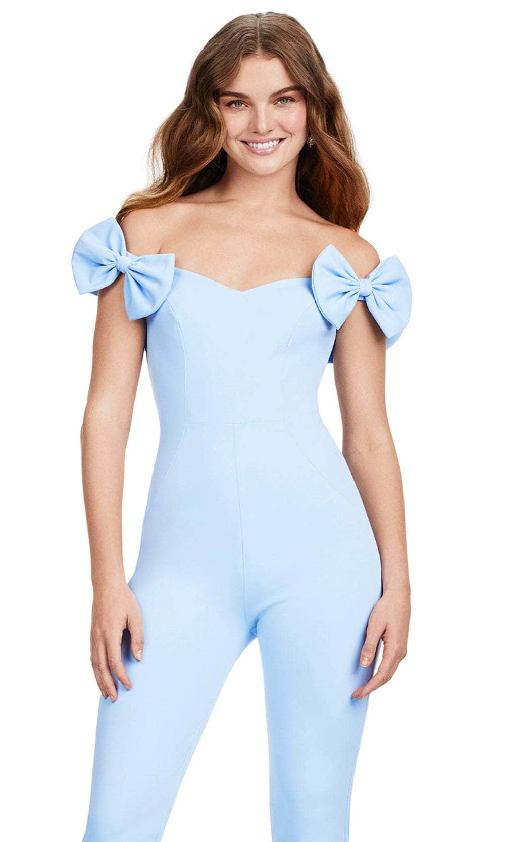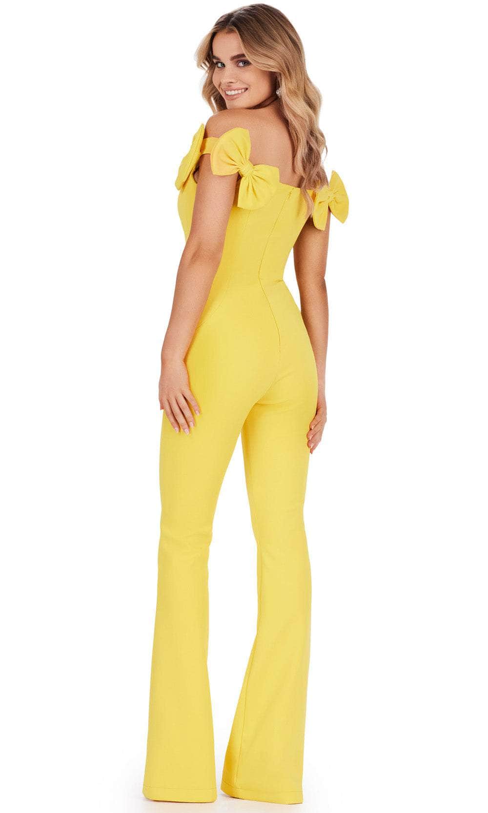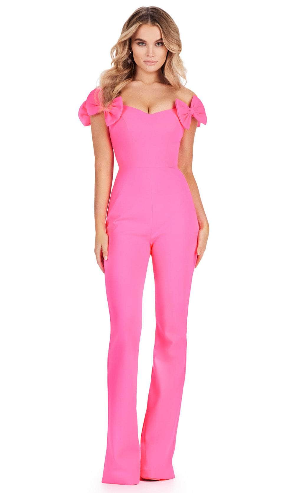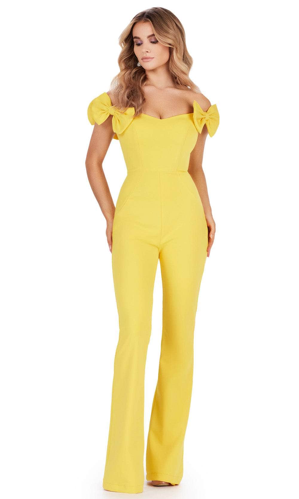 Turn heads and leave a lasting impression in this glamorous Ashley Lauren 11439 creation. This jumpsuit stands out with its vibrant scuba fabric and tailored lines, creating a bold and striking look. Bow accents adorn the sleeves, adding a touch of charm to the ensemble. The off-shoulder neckline adds a hint of sophistication to the design. The midrise back is discreetly fastened with a concealed zipper closure, ensuring a polished appearance. With its straight pants and jumpsuit design, this outfit offers both style and comfort, making it a versatile choice for various occasions. This piece is a sleek and chic option for those seeking a contemporary and fashion-forward outfit. Elevate your fashion game with this glamorous Ashley Lauren 11439 masterpiece. Models are wearing the Hot Pink, Fuchsia, Light Blue, White, and Yellow colors.