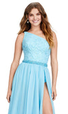 Navigate the red carpet like a vision in this inspired Ashley Lauren 11460 creation. This sleeveless dress features meticulous tailoring lines on an intricately embellished bodice, exuding refined craftsmanship. The bodice is designed with a beaded bodysuit, accented by an asymmetrical neckline for a unique touch. An embellished waistband enhances the waistline with understated elegance. The strappy midrise back conceals a concealed zipper closure for a seamless appearance. The chiffon skirt adds an airy and graceful element to the ensemble, along with a high slit for a hint of allure. Completing the look is a sweep train, bestowing a touch of sophistication to the overall design. Look regal from all angles when you don this Ashley Lauren Ashley Lauren 11460 masterpiece. Models are wearing the Black, Hot Pink, Periwinkle, and Sky colors.