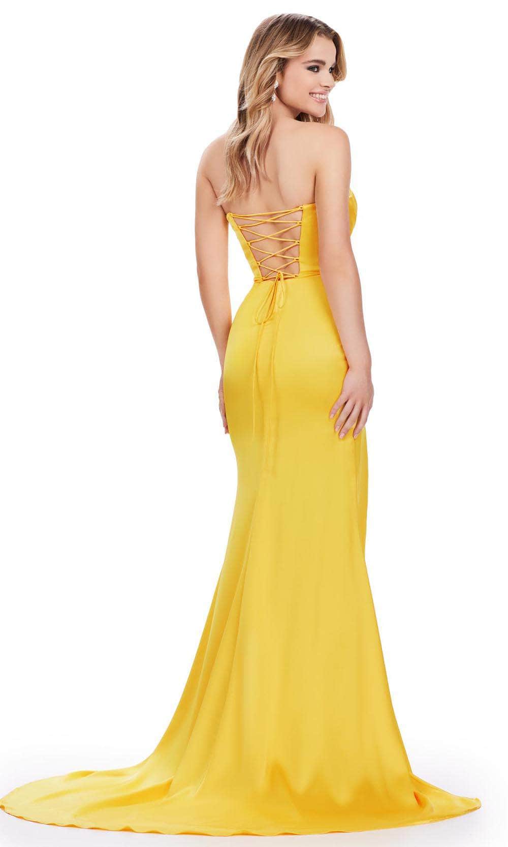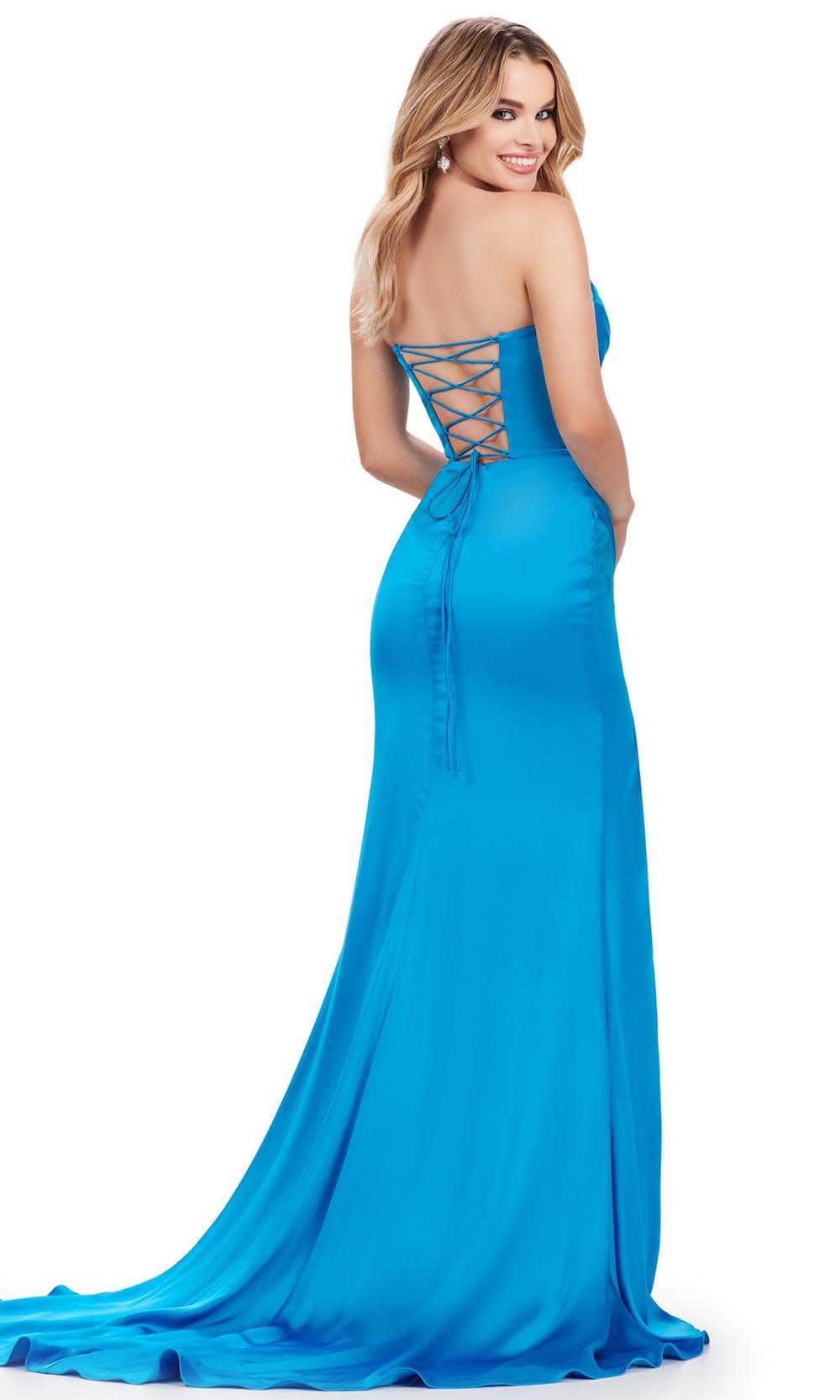 Set the stage on fire with your stunning appearance in this Ashley Lauren 11605 creation. This gown features a strapless design with a pleated bustier bodice that boasts an elegant wrap-style design. The open back is adorned with a lace-up detail, adding a touch of sophistication and intrigue. The trumpet skirt flares out gracefully, creating a flattering and classic silhouette, while a high slit offers both style and ease of movement. Completing the ensemble is a sweeping train that adds an element of grace and style to this understated and versatile dress. With its simple yet tasteful elements, this gown is a refined and timeless choice for various formal occasions. Make a statement with your impeccable fashion sense in this Ashley Lauren 11605 masterpiece. Models are wearing the Blue, Electric Lime, Hot Pink, Orange, and Yellow colors.
