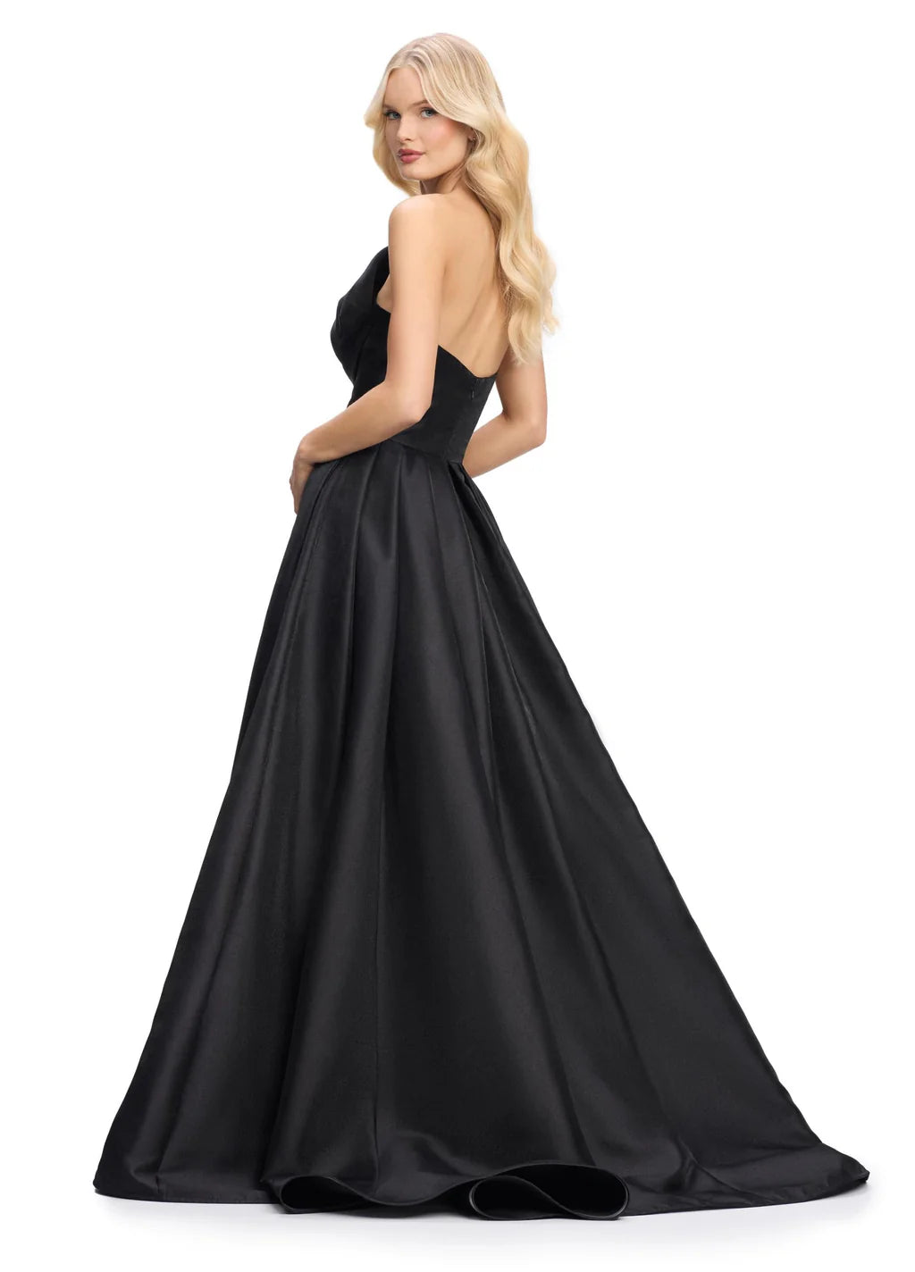 Enjoy a magical world by wearing this captivating Ashley Lauren 11609 creation. This strapless design is made from sleek mikado fabric and showcases a v-neckline with an illusion inset at the center. The asymmetrical oversized bow detail embodies extravagance, while the mid-open back has a convenient zipper for a secure and flawless fit. With a high slit allowing glimpses of your legs, the wrap-style skirt creates a ballgown silhouette as it reaches the sweeping train. This Ashley Lauren 11609 gown is sure to create a striking look that is sure to make anyone remember your grand entrance.