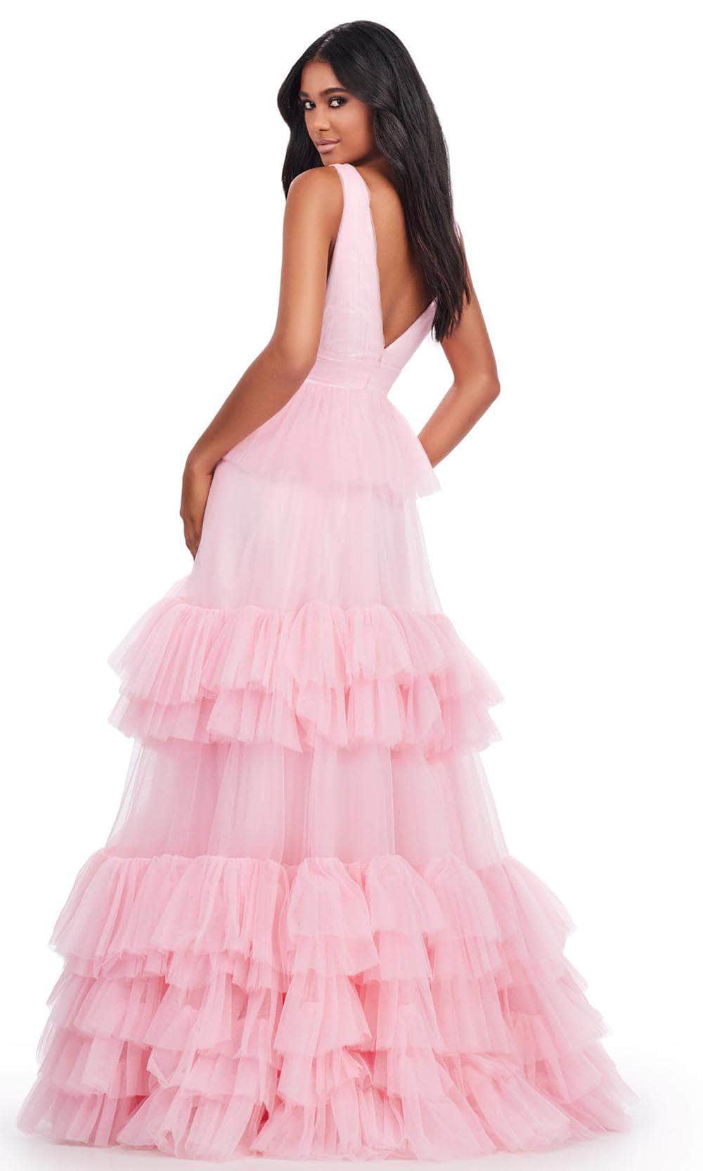 Strive to stand out and earn your place on the best-dressed list with this Ashley Lauren 11620 creation. The gown boasts an ethereal sleeveless design, featuring a plunging V-neckline and an illusion inset that infuses a hint of allure. The shirred bodice adds understated texture and detail. Its V-open back discreetly conceals a concealed zipper closure, ensuring a seamless appearance. A peplum accent elevates the waistline, leading to an A-line silhouette. The tiered tulle design creates a layered effect, and the floor-length hem completes the ensemble with timeless elegance. Make a lasting impression when you wear this Ashley Lauren 11620 masterpiece. Model is wearing the Ice Pink color.