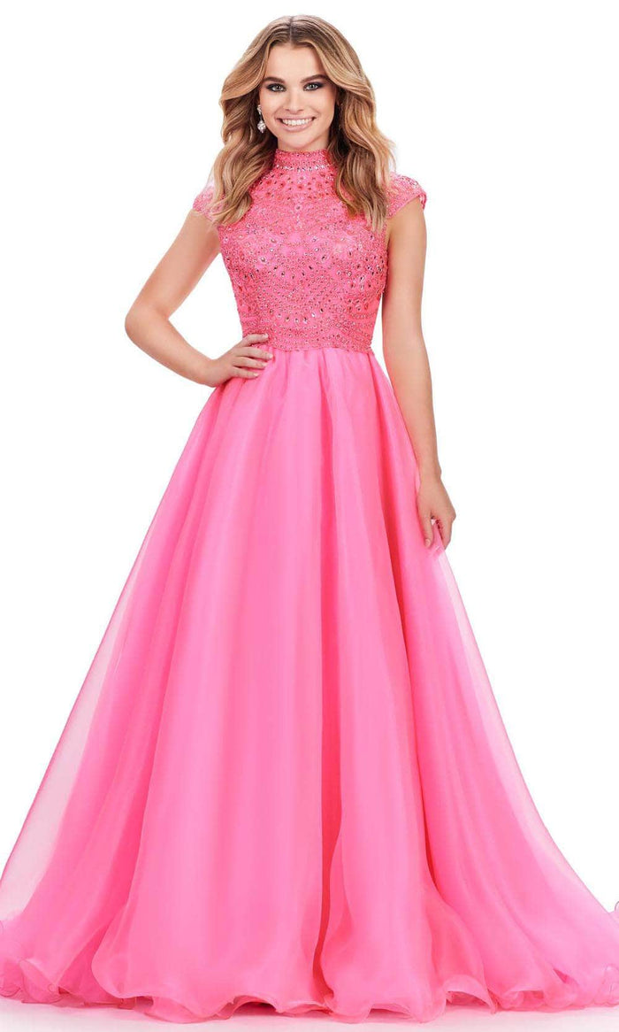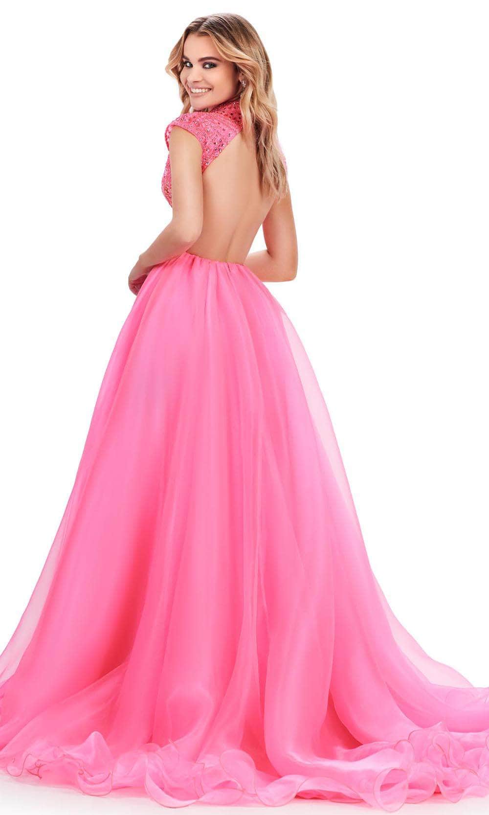 Command attention in Ashley Lauren 11630, a dress that embodies sophistication and glamour. The fitted sleeveless bodice is adorned with intricate beadwork, framed by elegant cap sleeves and a high neckline for a refined look. The open back, secured with a center zipper closure, adds a modern touch. The floor-length skirt gracefully flows in a ballgown silhouette, concluding with a train for added drama. Ashley Lauren 11630 is the perfect choice for those seeking a stunning presence at any formal event. Models are wearing Sky and Hot Pink colors.