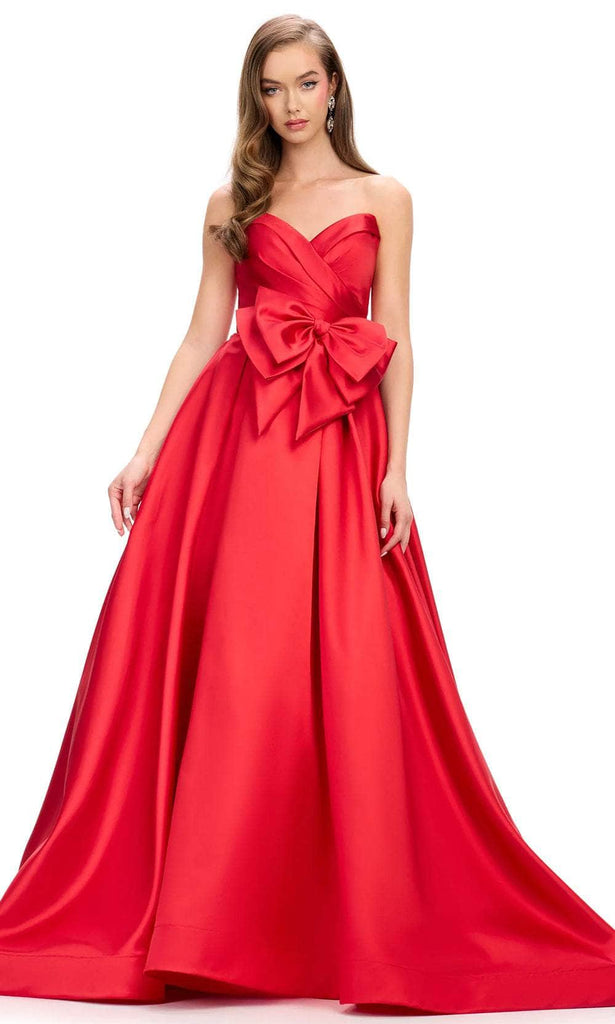 Make a breathtaking red carpet entrance in the Ashley Lauren 11770 masterpiece. This strapless mikado design features asymmetric pleating across the bust, and chic fold-over detailing in the sweetheart neckline. An oversized bow accent at the waist provides a touch of playfulness. The alluring back highlights the mid-open design and discreet zipper closure. The skirt fascinatingly creates a ballgown silhouette that drops to the floor and ends in a dramatic sweeping train. Mesmerize the crowd wearing this extraordinary Ashley Lauren 11770 gown. Models are wearing Black, Red, and White colors.