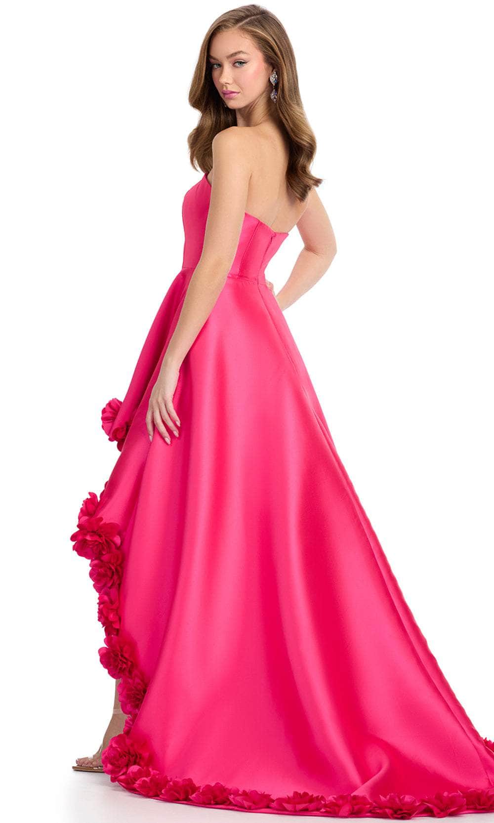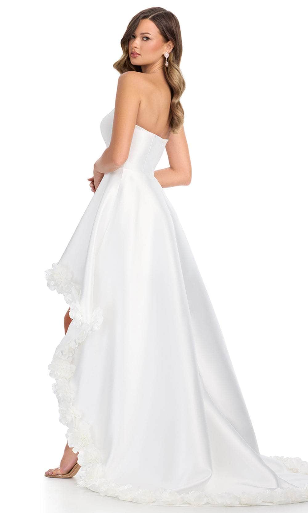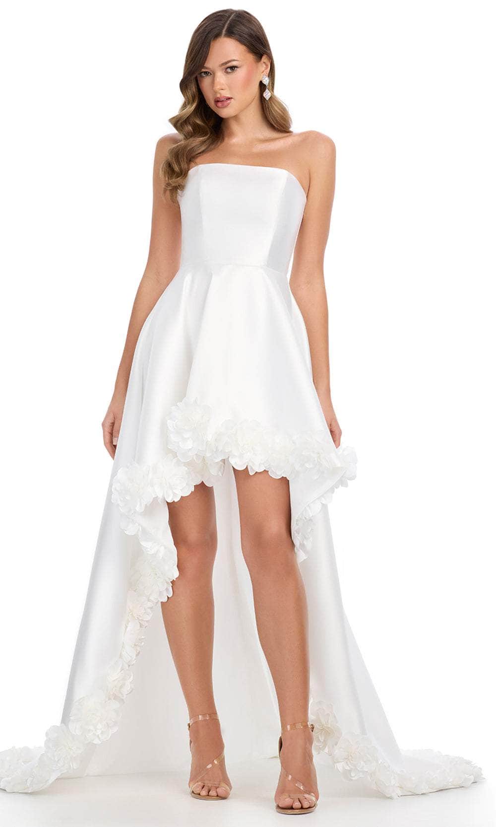 Add a touch of fun and flirtiness to your wardrobe with the Ashley Lauren 11970 high-low dress. This fabulous dress features a strapless bustier neckline adorned with beautiful 3D floral trim, creating a captivating and unique look. The Mikado fabric provides structure and elegance, while the high-low hemline adds a playful twist, making it perfect for both formal and semi-formal events. Whether you're attending a wedding or a cocktail party, this dress ensures you stand out with confidence and grace. The Ashley Lauren 11970 dress combines modern design with classic charm, making it a must-have addition to your collection. Models are wearing Fuchsia and Ivory colors.