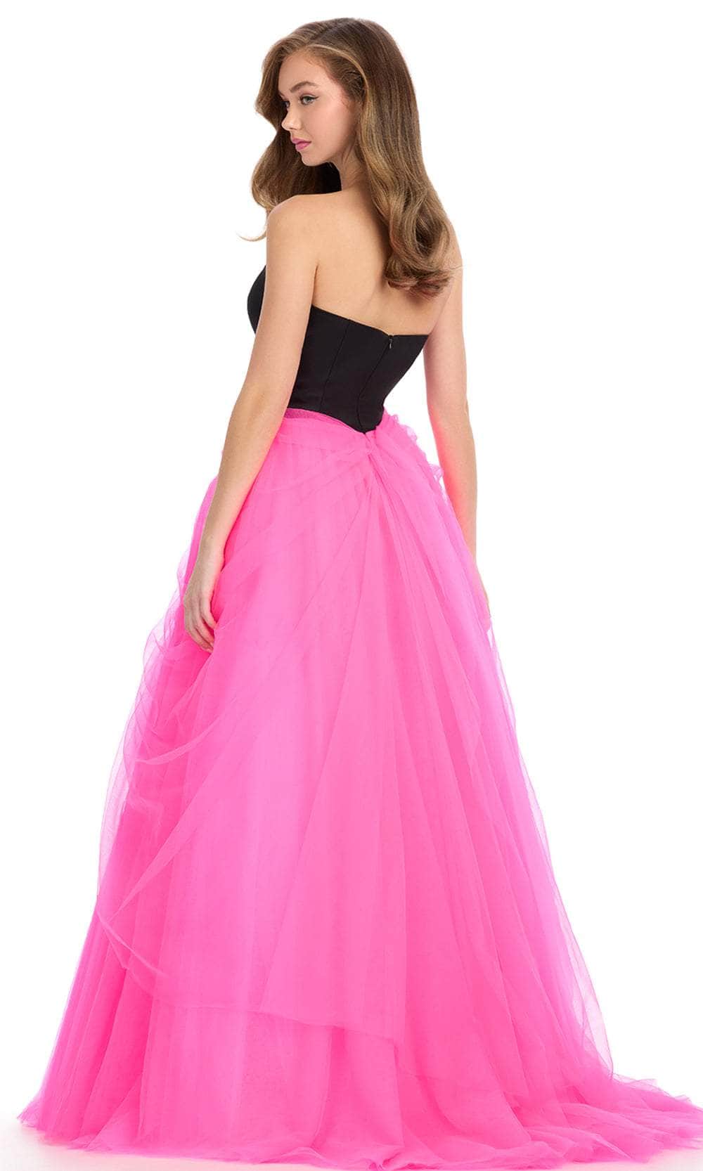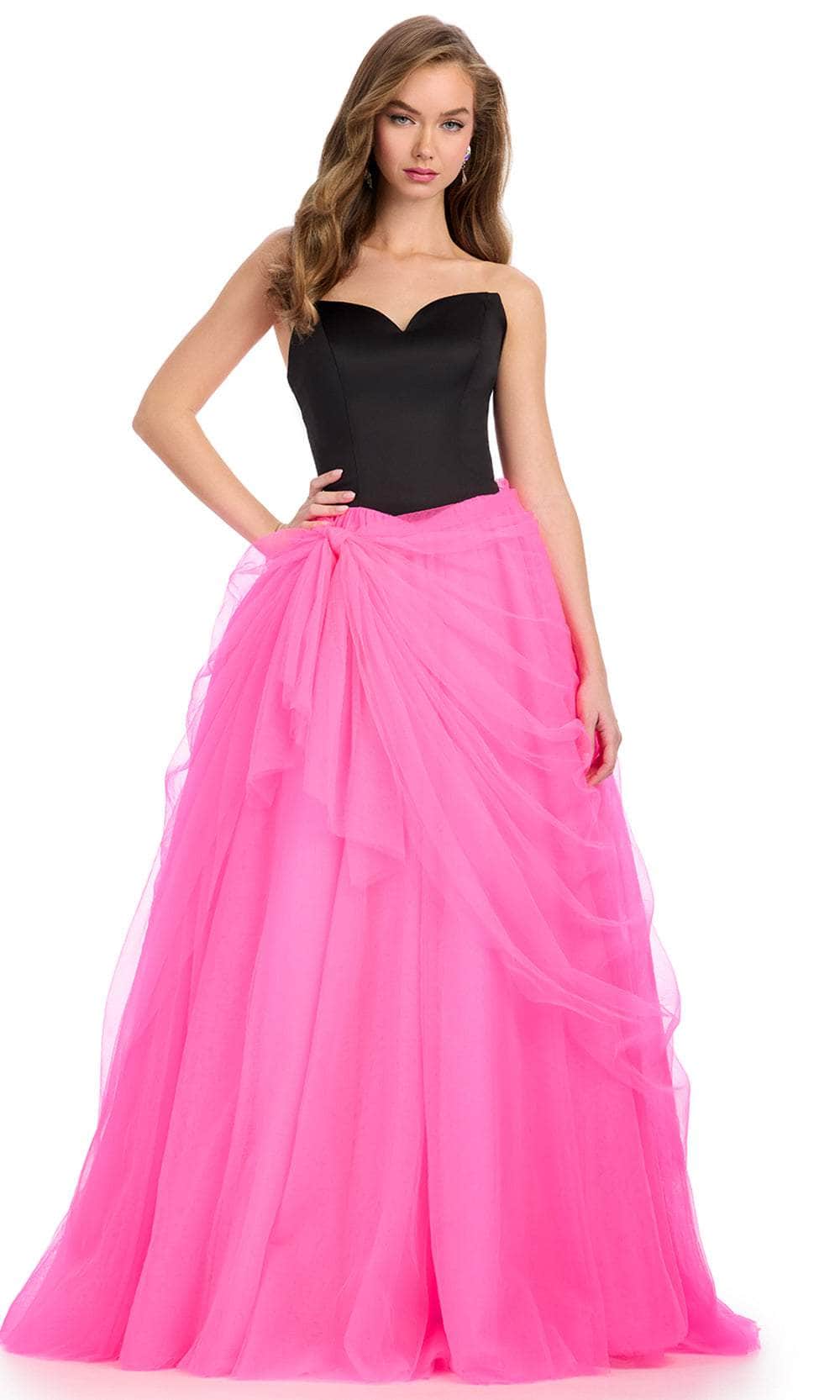 Embrace boldness and elegance with the Ashley Lauren 11984 ball gown. This striking strapless dress features a satin bodice that accentuates your curves, while the sweetheart neckline adds a touch of romance. The gown is completed with a draping tulle A-line skirt, creating a dramatic and eye-catching silhouette. Perfect for any formal event, this dress ensures you turn heads with its unique blend of classic charm and modern flair. The Ashley Lauren 11984 gown is a must-have for those who want to make a memorable entrance, combining sophistication and style in one fabulous piece. Models are wearing Black/Blush and Black/Hot Pink colors.